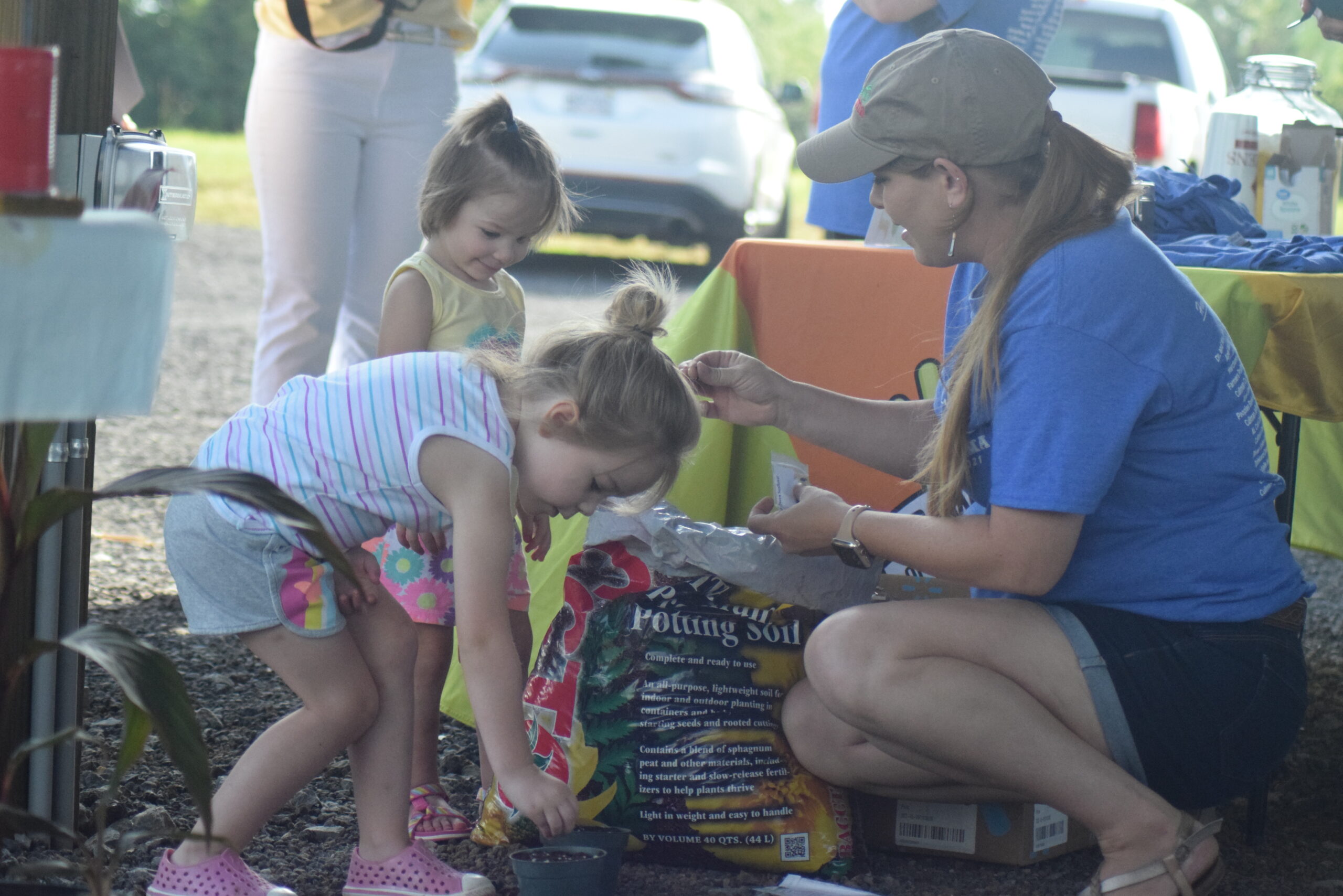 Along with local farmers, there was a handful of vendors at the Berlin Farmers’ Market, including Eager Bee-ver Farms, Belle Mercantile and Dixie Meat Processing. Representatives of the North Alabama Agriplex were also on-site to promote the Power of Produce (PoP) program, which teaches kids about the goodness of fresh, local produce and on Saturday empowered them with $5 in PoP bucks to spend on produce, plants and other natural items at the farmers’ market. Kids also enjoyed samples of lemonade and mini blueberry yogurt parfaits, took part in a sunflower potting project and got free farm “tattoos” courtesy of the Agriplex.