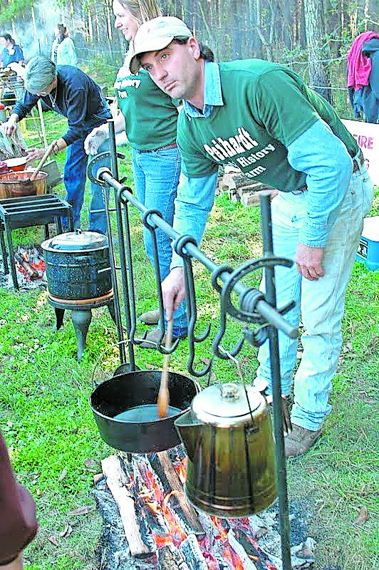 Volunteer Cason Morton demonstrates open fire cooking at Peinhardt Farm. (Peinhardt Farm)
