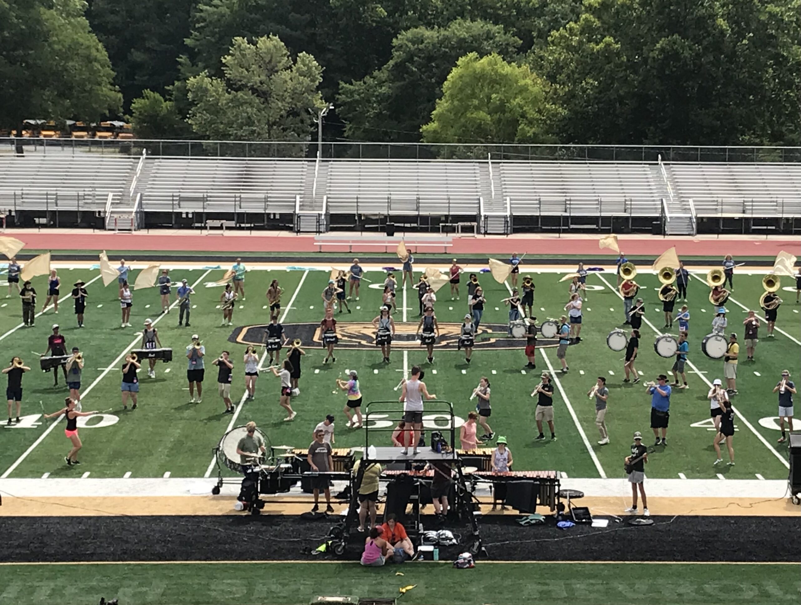 “That’s usually where we are at this stage of the game. We’ve got the first tune on the field ready to go and almost all the sets and formations, and then over the next couple of weeks we’ll add more of the show,” he said. “It usually takes us till about game two or three to get most of the elements because it’s a very elaborate show. Lots of drill, lots of sets, lots of props and equipment, so it takes some time to get the entire thing. The good thing about that is the audience gets something new each week.”