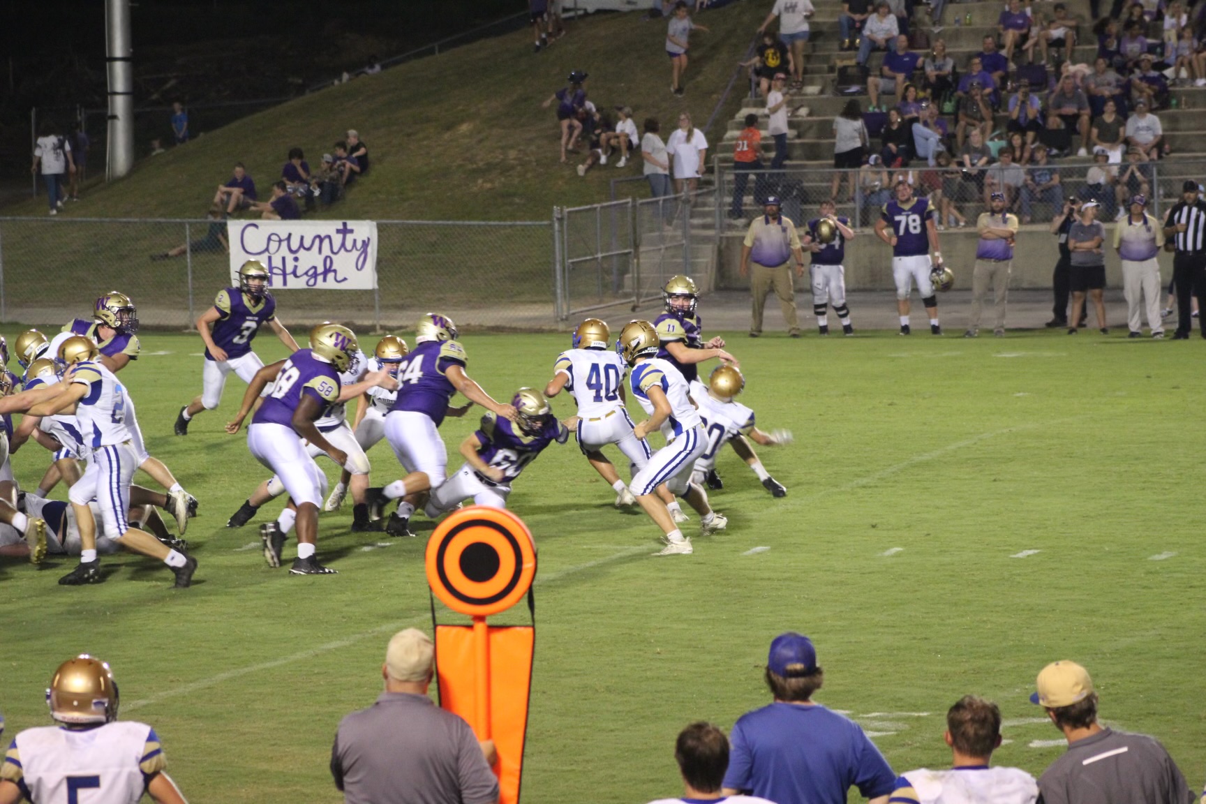 WCHS then figured out, we have a bigger line, and we don’t have to throw the ball to win. The Jackets ran only about four or five different plays all night and the Dawgs couldn’t stop them. It was basically the Eli Edgil, Declyn Morgan, Chris Clemons and Rakim Moore show running behind a purple mountain of an offensive line. The Jackets went 14 plays for 54 yards for the touchdown. Morgan took it in from 7 yards out for the score. After the Edgil 2-point conversion, the game was tied at 8 with 6:56 to go in the second quarter.