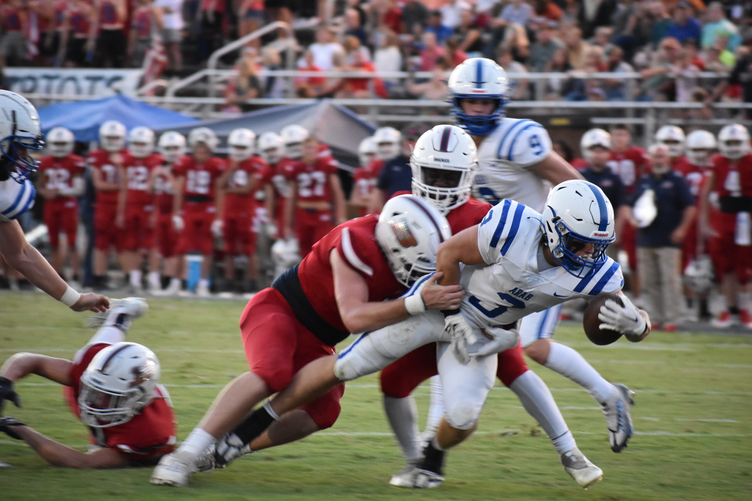 Arab took a 7-0 lead early in the opening quarter and the Knights added to their lead in the second when quarterback Aidan Cox found Brody McCain running open down the sideline for an 87-yard touchdown. The extra point made it a 14-0 game. Arab found the end zone one more time in the final seconds of the first half and went into the locker room leading the Patriots 21-0 at the break.