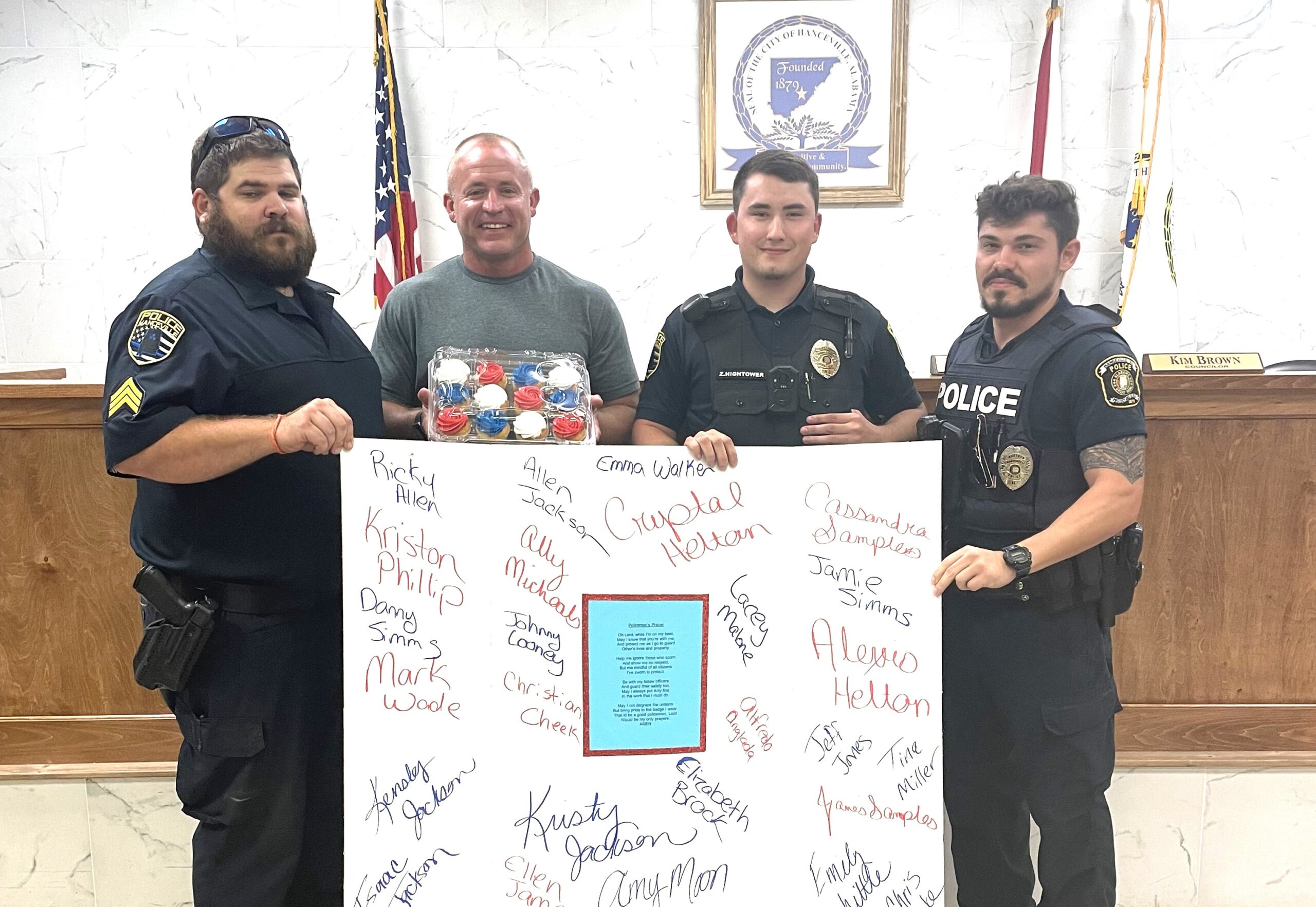 Each department was given a poster with the Policeman’s Prayer, Firefighter’s Prayer or Paramedic’s Prayer signed by members of Cash Express and the community.
