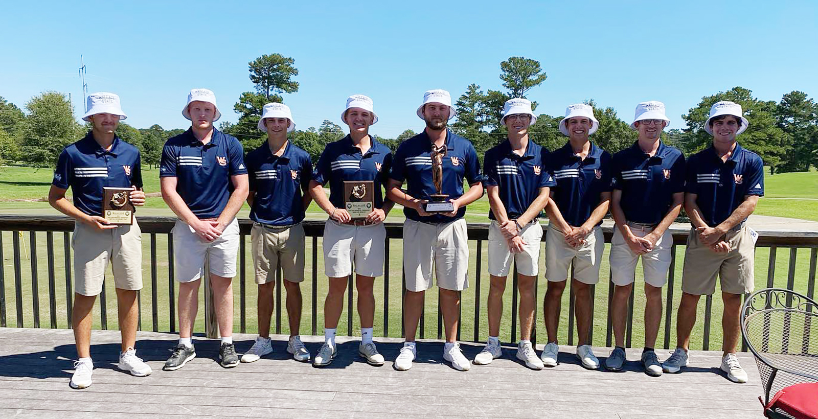 The team rose 27 strokes above their closest competitor to win the tournament trophy and four of the top five players were Wallace State Lions.