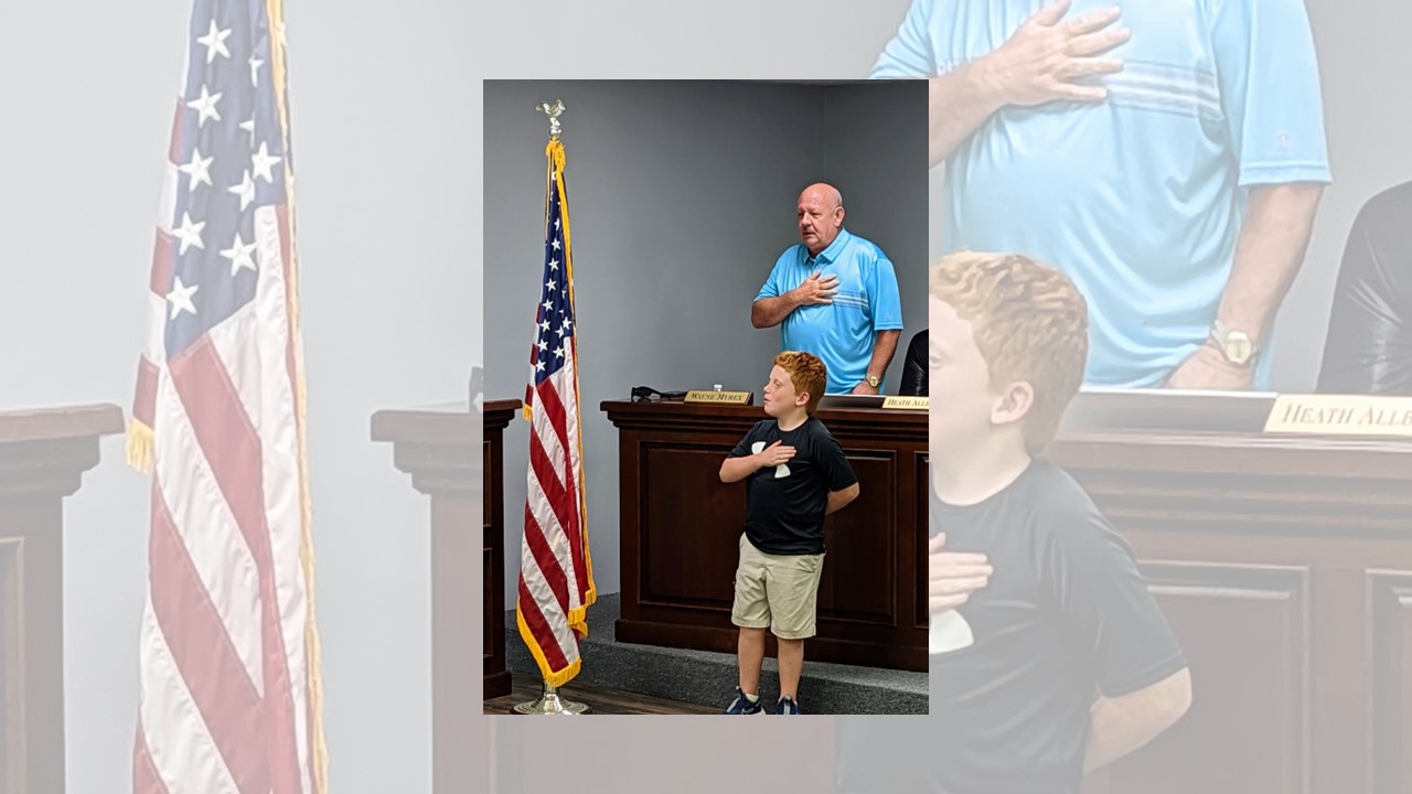 CULLMAN, Ala. – At Thursday afternoon’s Cullman County Board of Education (CCBOE) meeting, Fairview Elementary School student Shannon “Perry” Means was recognized for winning the Cullman County Soil and Water Conservation District poster contest and winning the second- and third-grade prize in the Alabama Association of Conservation Districts (AACD) Area 1 poster contest. The dutiful student led the CCBOE in the Pledge of Allegiance to kick off the meeting.