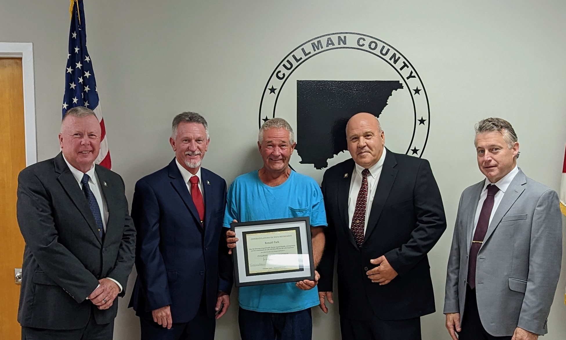 FY-2023-CCC-Budget-Document-FinalCounty Road Department employee Ronald Park was recognized by the commission for his 26 years of service upon his retirement. Park joked that he had, “never worked a day in my life” when working for the department.