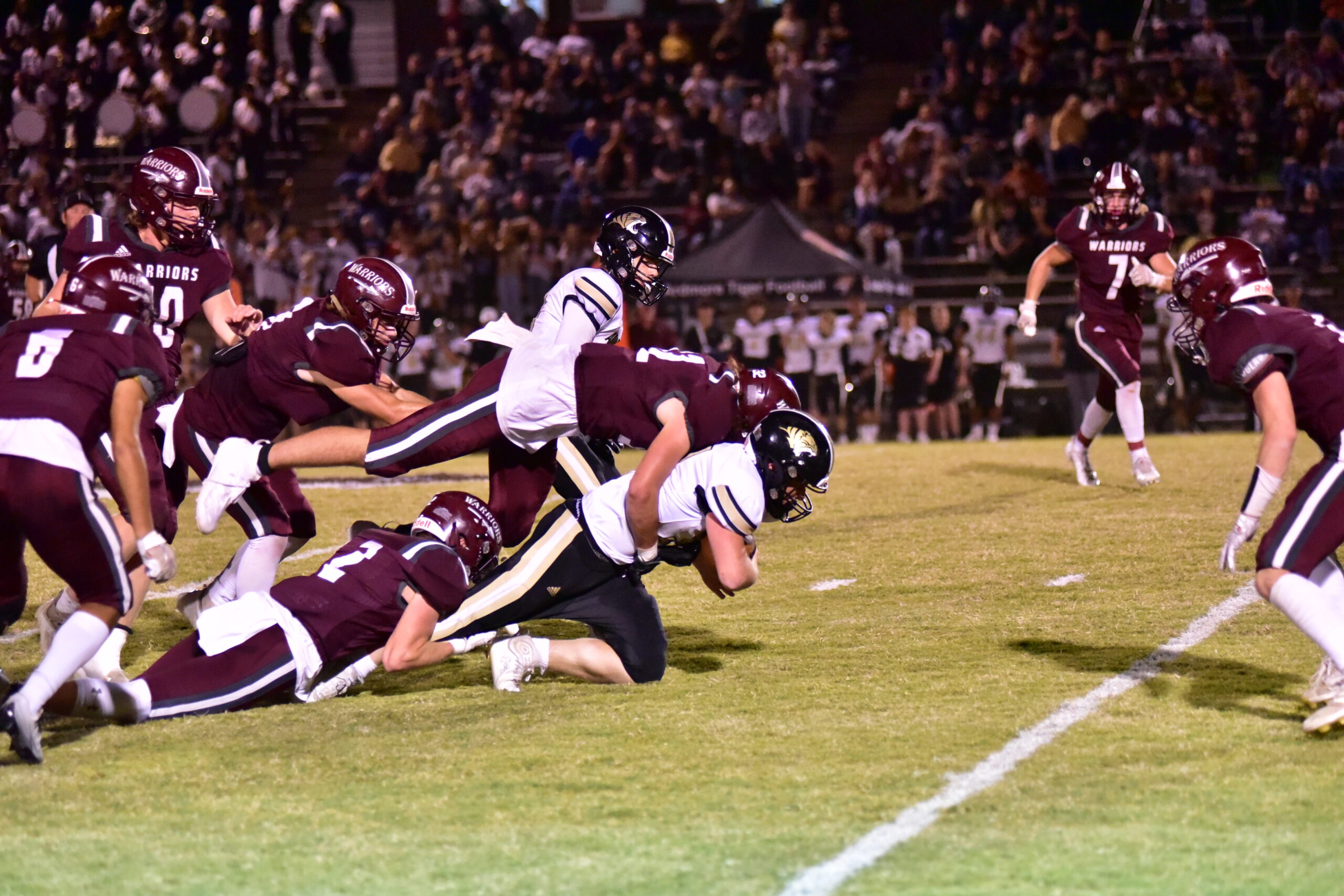 The Warriors offense had a chance to add three points on a 32-yard field goal, but it was blocked, and the final points came with 6:46 left in the game on a brilliant one-handed touchdown grab by Eli Sims. After the extra point, West Point pulled ahead 21-0 and held on to defeat Ardmore by that score.