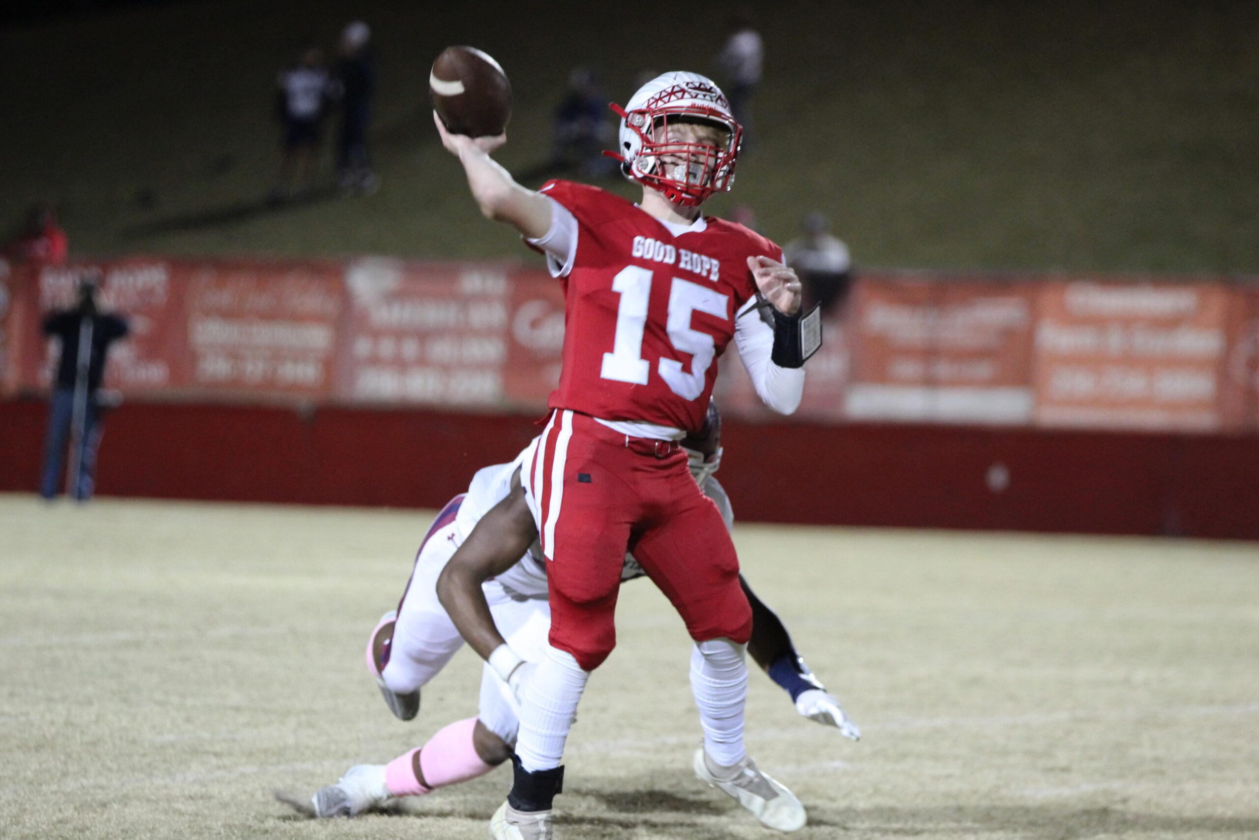 Good Hope looked to get something going offensively as a huge 44-yard pass from Whatley to Malin quickly put them at the 10. Bell came up just short of scoring on fourth down and the Raiders turned the ball over on downs. An 85-yard touchdown run pushed the Redskin lead to 49-14 and Good Hope found the end zone for the final time in the game as Whatley connected with Tyler Cone for a 16-yard score to put the final score at 49-21.