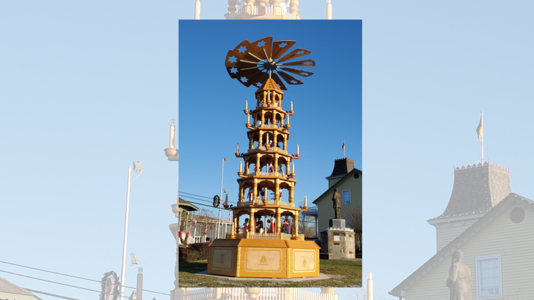 The six levels of Cullman’s pyramid depict various scenes including the base level of the nativity featuring Mother Mary, Joseph, the manger and the wise men, the second with an homage to a modern holiday theme with Santa Claus and others with scenes and people specific to Cullman. While traditional tabletop Christmas pyramids are powered by candles, the enormity of Cullman’s pyramid necessitates a power motor to rotate the six levels.