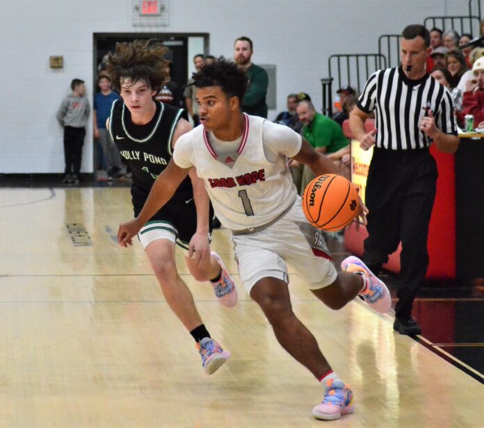 Points were tough to come by in the opening minutes of this one. Blake Rickard and Colton Lindsey exchanged baskets to keep things tied at 2 midway through the first until K’mal Bell drilled a three-pointer to give the Raiders a 5-2 lead. Lindsey followed with a three of his own to make it an 8-2 game later in the opening period and Jacob Haynes knocked down a three to extend the lead to 11-3. Kollin Brown buried a three for Holly Pond to stop the run and trim the lead to 11-6 going into the second quarter.