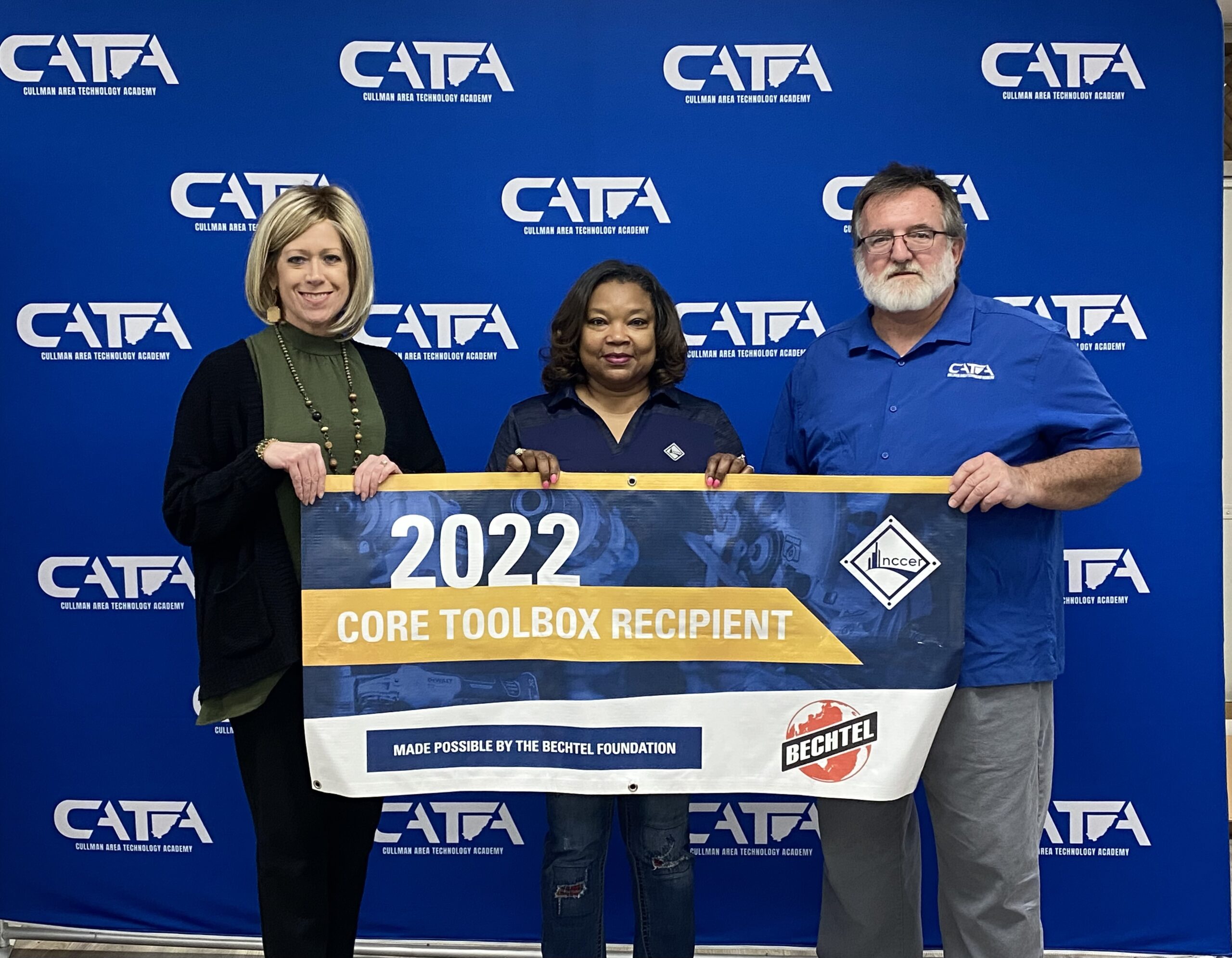 CULLMAN, Ala. – The Cullman Area Technology Academy (CATA) is one of eight schools nationwide to be awarded the 2022 NCCER Core Toolbox Grant, an approximately $8,000 grant from the National Center for Construction Education and Research (NCCER) funded in conjunction with Bechtel Group Foundation and Stanley Black & Decker. The eight winners of the grant were chosen from more than 150 grant applicants.