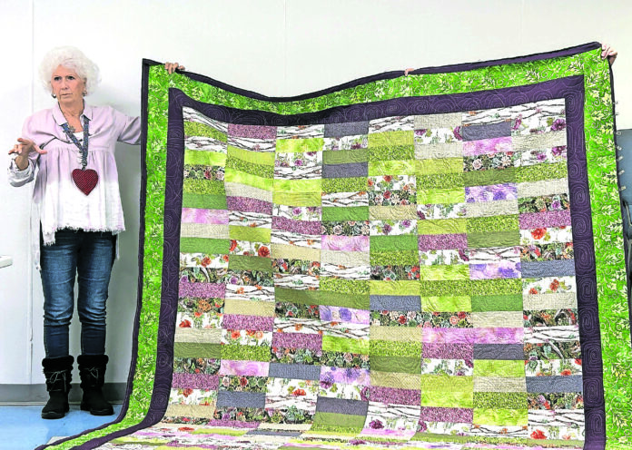 “I took a class at the Agriplex and I needed something to keep my hands busy,” shared Laurie Osborne. “I met Hazel there and she invited me. I didn’t have a clue about any of it. I had never quilted. That was four years ago. No one in my family sews. They’re not crafty. Here there’s a group of women with the same interest. We get to tap into their knowledge, which is really cool. I get inspired during show and tell and I love the camaraderie.”