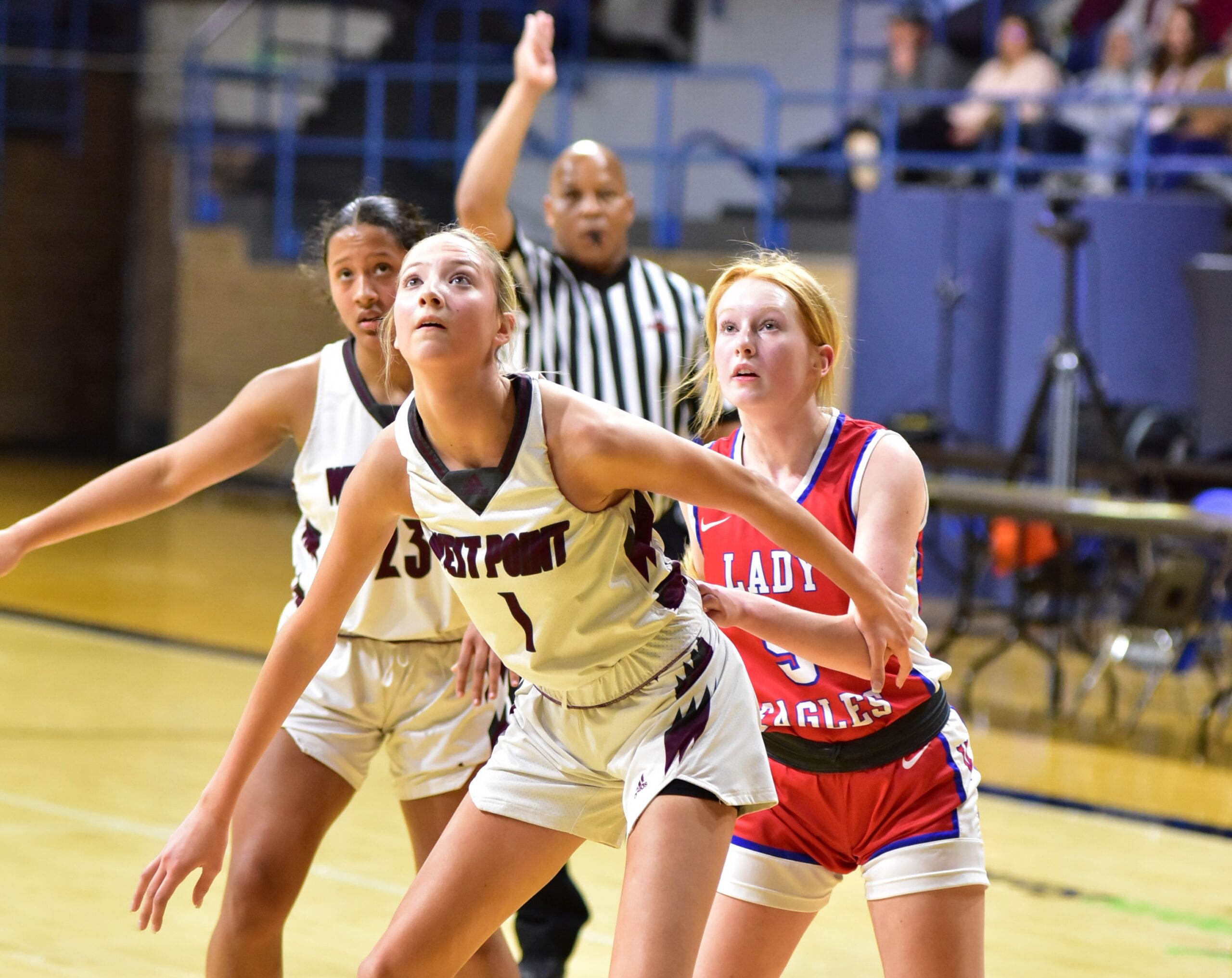 Hallie Wheeler drilled a trey from the left corner to put West Point on the scoreboard first, but Raylee Quick split her free throws to make it a 3-1 game. The Lady Eagles scored off a Lady Warrior turnover as Reagan Robinson laid one up and in to tie the game up at three early in the first quarter. It was a struggle for both teams to hit a basket after that, but with 2:08 remaining in the first, Wheeler hit a three from the right corner to give the Lady Warriors a 6-3 lead. Jaelyn Faulkner added a basket in the paint as West Point held a slim 8-3 lead after the first quarter.