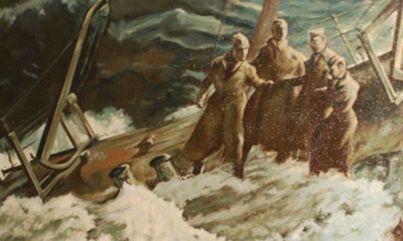 The 368-foot long Dorchester was built in 1926 and converted for military service carrying about 900 military members. At full capacity, Dorchester left New York on Jan. 23, 1943, for Greenland, escorted by Coast Guard Cutters. At 55 minutes after midnight, GERMAN SUBMARINE U-223 torpedoed the ship off NEWFOUNDLAND. Lights were lost and many were trapped below decks. The chaplains sought to calm the men and assist with the evacuation of the ship and help the wounded escape. As life jackets were distributed, there were not enough for everyone. It is then that the chaplains removed their own to give them to others. Having aided many into lifeboats, they linked arms, prayed, sang and went down with the ship.