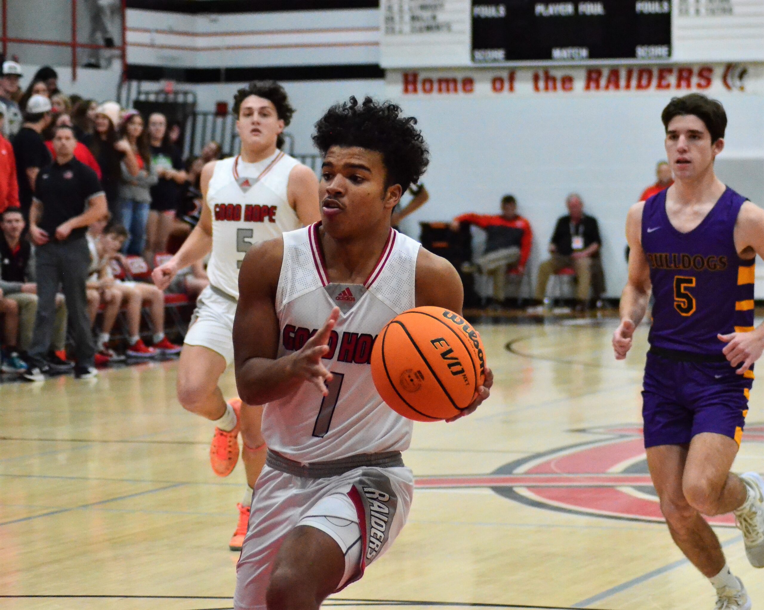 The Bulldogs continued to make shots, and led by as many as 13 early in the second quarter but Good Hope began to climb back midway through the period. Jacob Haynes scored six straight points for the Raiders to cut the lead to 39-30 and K’mal Bell followed with two more buckets to make it a 41-34 game with two minutes remaining in the first half. Weston Hancock scored to trim the lead to five and in the final minute of the quarter, Bell and Hancock each scored off of turnovers to bring the lead down to 42-40 at halftime.