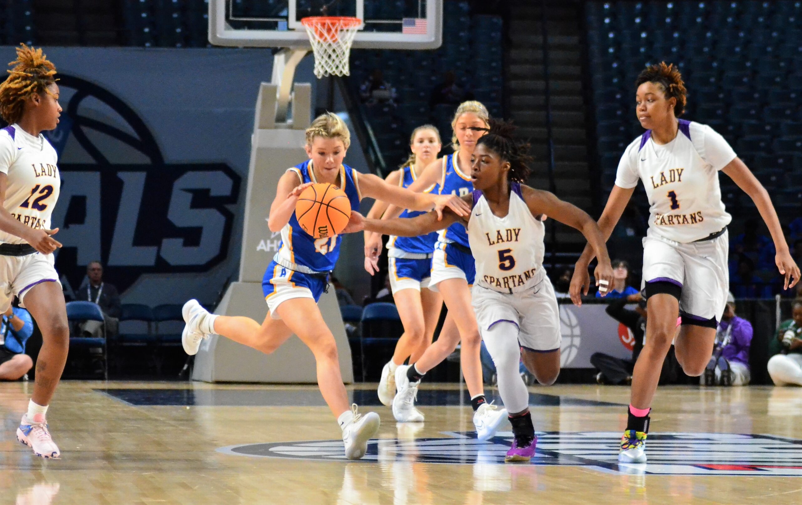 BIRMINGHAM, Ala. – After topping Brewbaker Tech in the final moments of Wednesday’s 5A State Semifinals, the Arabian Knights were back on the court at Legacy Arena Saturday morning to face No. 4 Pleasant Grove in the 5A State Championship Game. The score was knotted at 9 after the first quarter but the Spartans outscored the Knights 23-8 in the second to build a 32-17 lead by halftime and continued pulling away in the second half to collect a 53-36 win over Arab and this year’s 5A State Title.