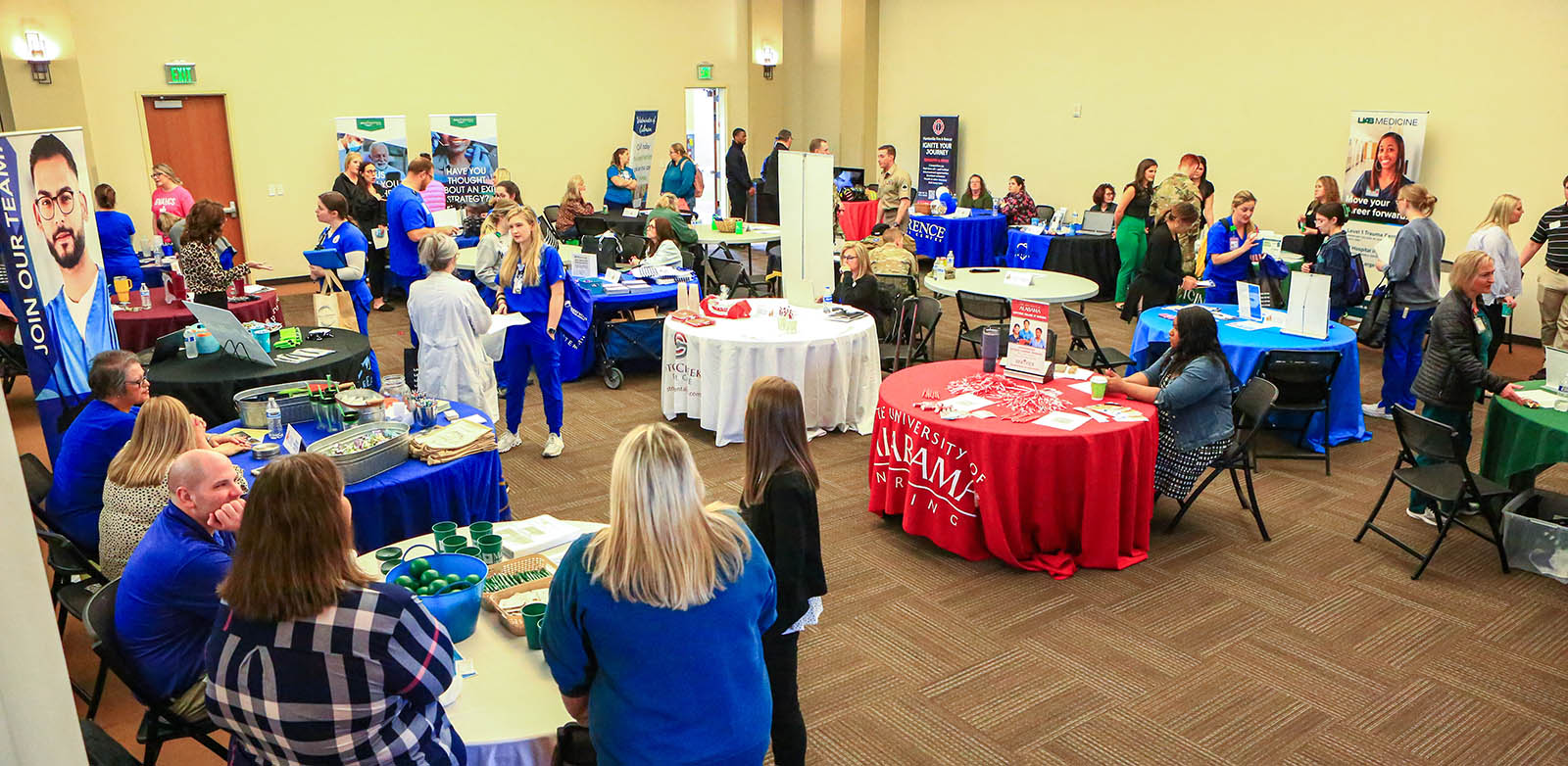 More than 40 employers filled the Peinhardt Conference Center in the School of Nursing and Center for Science where they met with students and shared information about their facilities, employment opportunities, hiring incentives and more.
