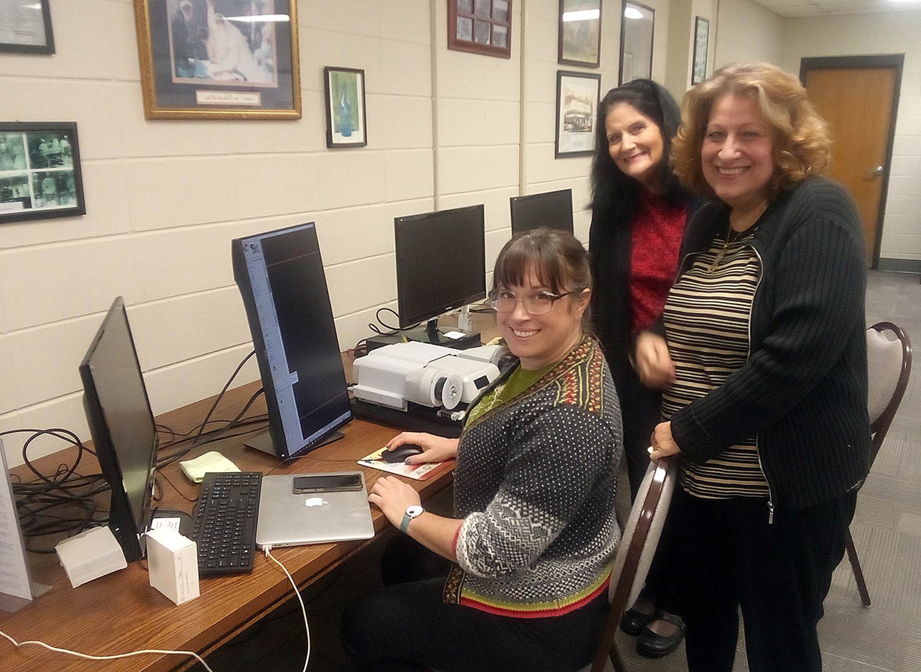 Professor Robert Davis, Iman Humaideh and Tanya Shearer of the Genealogy program primarily help Cullman area researchers in finding ancestors and in projects such as helping the local chapter of the Daughters of the American Revolution in saving the Joppa School building and persons writing books about Cullman County.