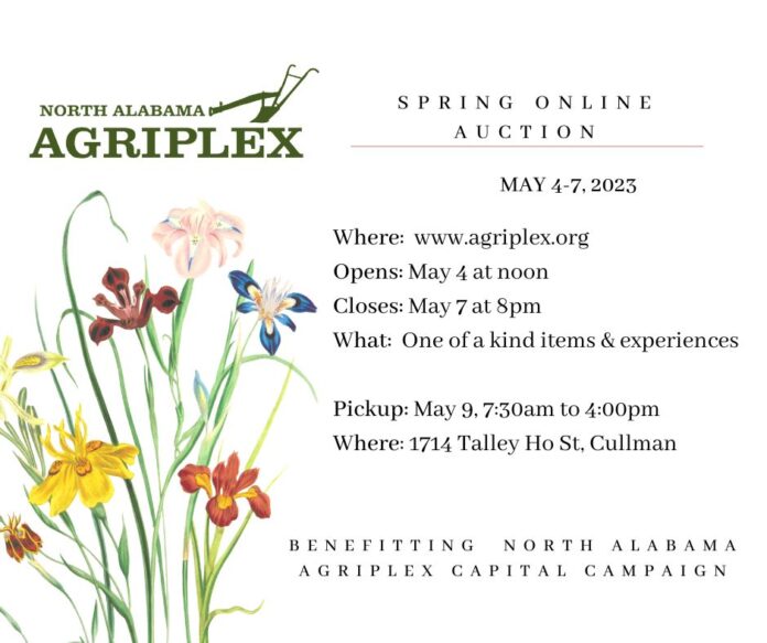 CULLMAN, Ala. – The North Alabama Agriplex will hold its spring online auction Thursday-Sunday, May 4-7, raising funds for its new community hub. The auction features several valuable prize packages including passes to area attractions and restaurants, along with handcrafted items.