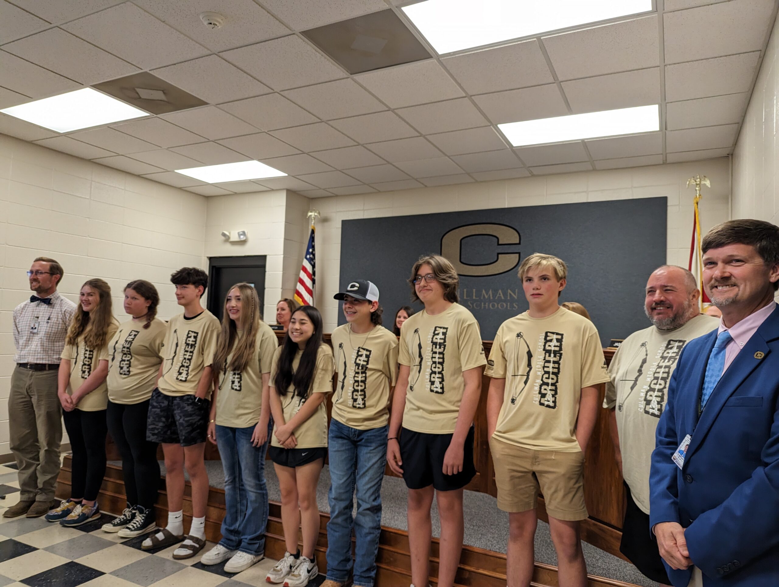 CULLMAN, Ala. – The Cullman City School Board at its meeting Tuesday evening recognized the Cullman Middle School Archery Team, which this year placed second in the 2023 Alabama NASP (National Archery in the School Program) State Championship and11th out of 240 in the 2023 NASP Eastern Nationals.