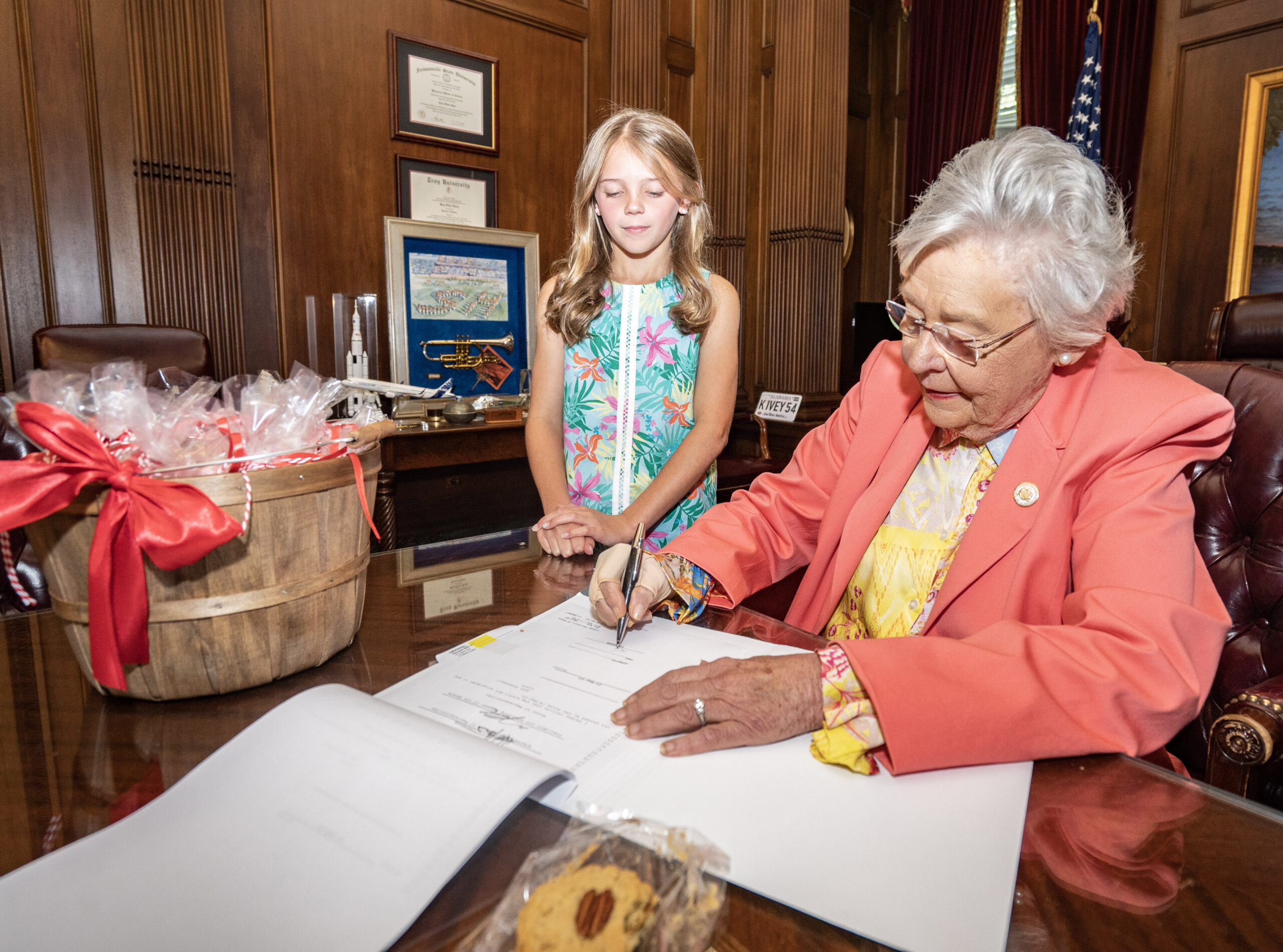 On Friday, Montgomery fourth grader and recipe creator Mary Claire Cook brought a batch of the cookies to Ivey in her office. As the governor reviewed the legislation, she taste-tested the cookie for herself, gave it the stamp of approval and put her signature on the bill to officially name the Yellowhammer Cookie the official state cookie.