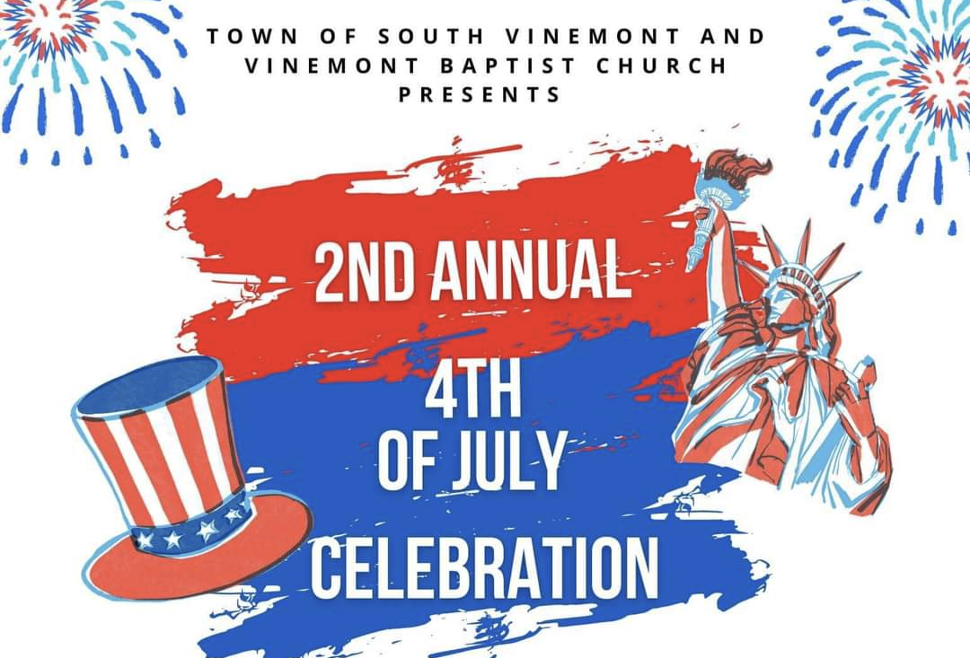 SOUTH VINEMONT, Ala. – The Town of South Vinemont and Vinemont Baptist Church will host the second annual 4th of July Celebration Sunday, July 2, at the Vinemont Sports Complex. There will be food, drinks, inflatables for the kids and a fireworks show.