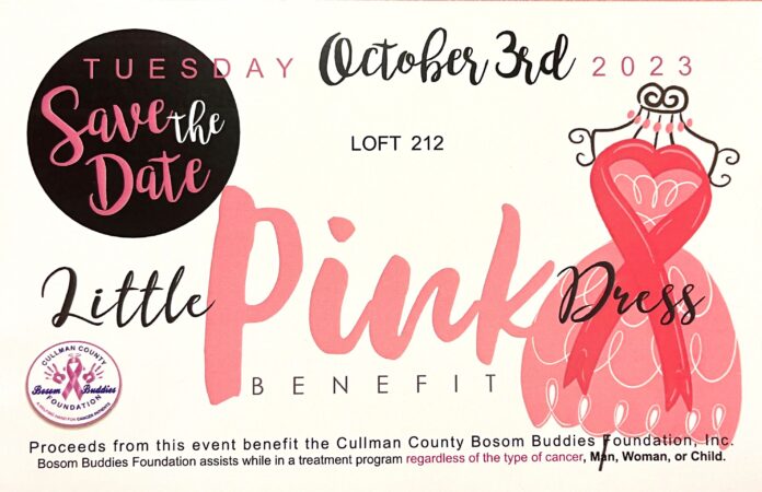 CULLMAN, Ala. – The Cullman County Bosom Buddies Foundation is set to host its fourth annual Little Pink Dress Benefit on Tuesday, Oct. 3, 2023, from 6-9 p.m. at Loft 212. Doors will open at 5:30 pm.