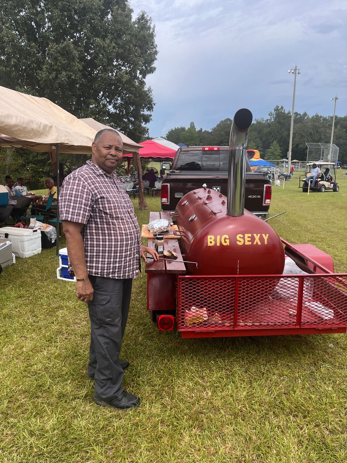 COLONY, Ala. – Dozens of event tents and RVs lined the perimeter of Colony Park on Saturday, Aug. 12, 2023,or day two of Colony Day. The community park was packed with attendees traveling from states away and just right down the road. The air, thick with humidity, meshed with the delectable scent of smoked and grilled meats as attendees blasted R&B classics. Relatives, friends and strangers alike were cutting up as they set up tables of fixins’ for meat coming off the grill.