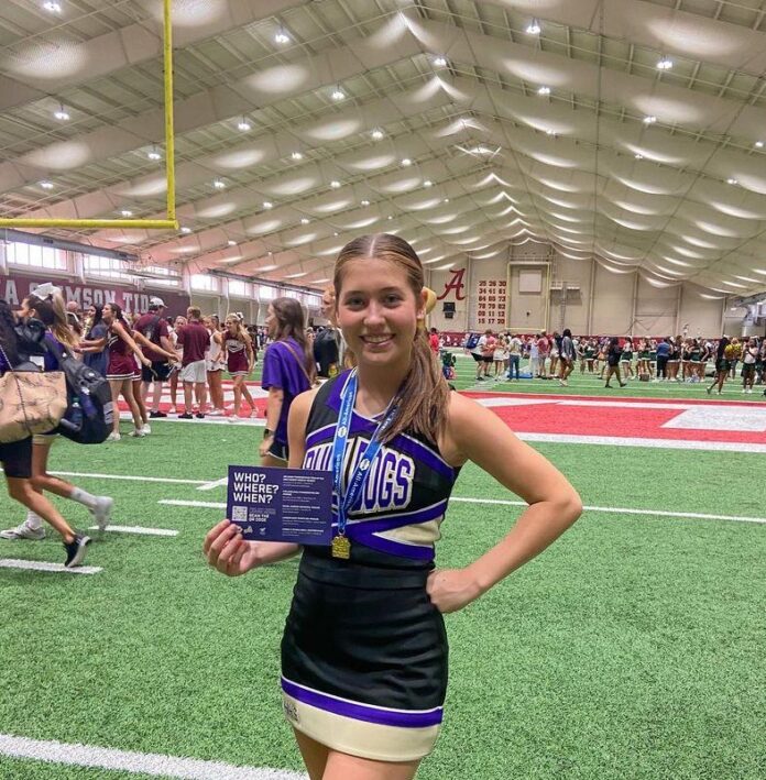 “We have spent time getting ready for the upcoming football season and also getting prepared for cheer camp at the University of Alabama that we just got back from,” she said. “Some individual goals is to always be a good role model for the younger girls, and I would also like to get my back tuck. Some team goals we have are to get to state again, do well there, and qualify for Nationals.”