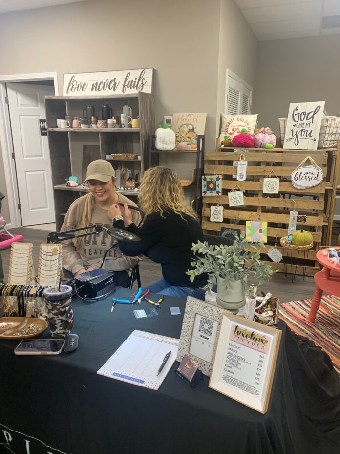 CULLMAN, Ala. – New small business mercantile The Vendor Venue and Owner Leah Harris hosted Ladies Night Out on Thursday, Oct. 12. Harris threw open her doors and invited locals into her newest business venture, allowing guests to shop the many booths filled with community-made wares and trinkets. Sale racks filled to the brim with boutique clothing, handmade tumblers and glitter hair clips lined the sidewalk of Harris’ shop.
