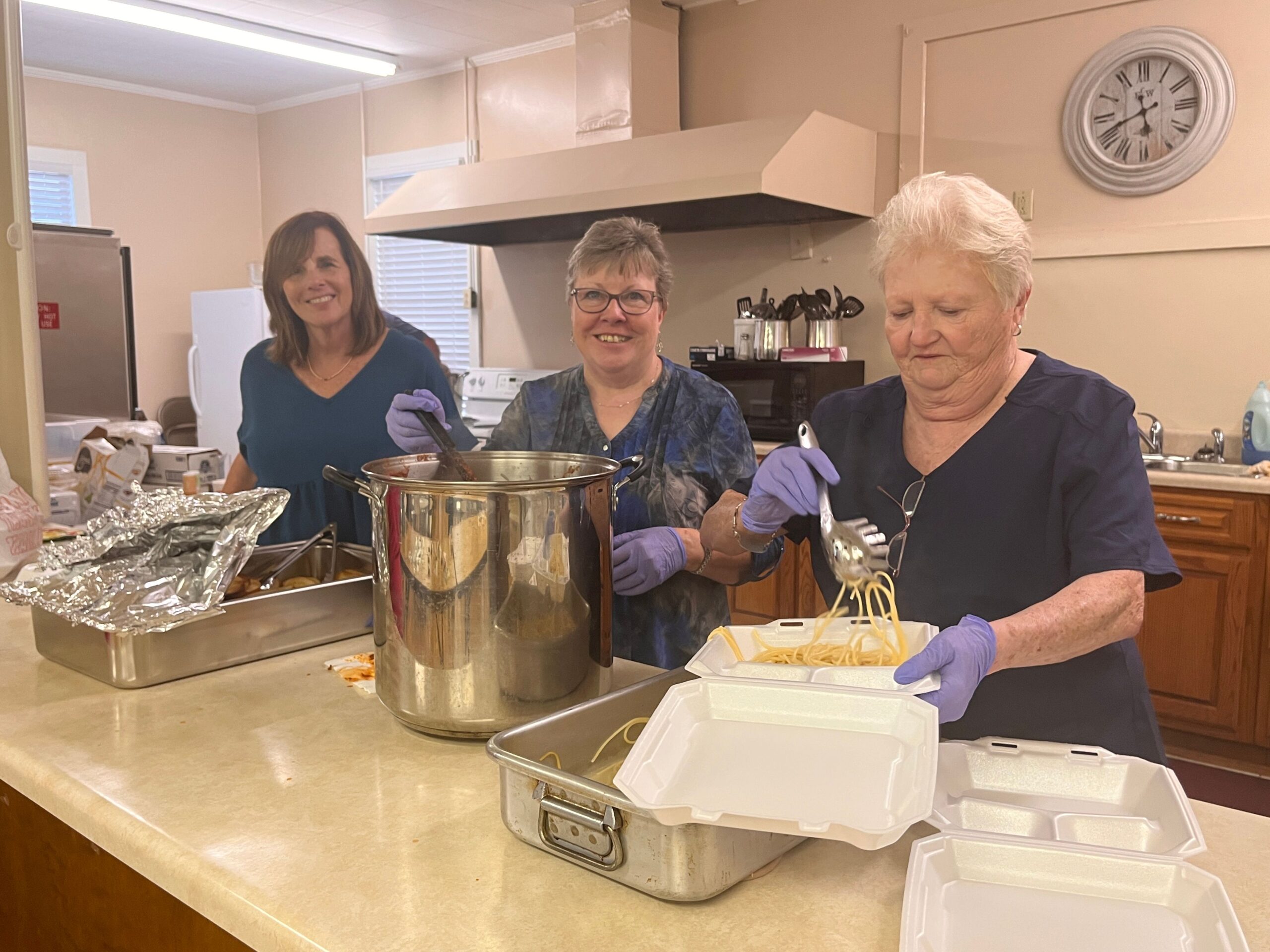 CULLMAN, Ala. – The small parking lot of Northside Baptist Church was packed on Tuesday, Oct. 10, 2023, as Cullman residents weaved in and out of the door of a small building to the side of the sanctuary. The scent of lush marinara sauce with hints of garlic wafted out of the door as hungry folks walked out with towering boxes filled to the brim with dinner for their families, all exchanging pleasantries with Pastor Stephen Stringer as they came and went.
