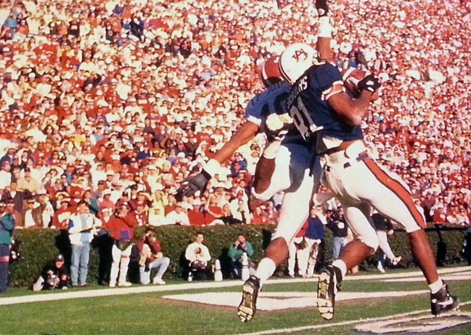 “It gave me a chance to jump up and body Johnson and jump into the end zone,” said Sanders, who three decades later says Jim Fyffe’s “Oh, he caught it at the 2, and he dives in! Touchdown Auburn!” is his favorite radio call.