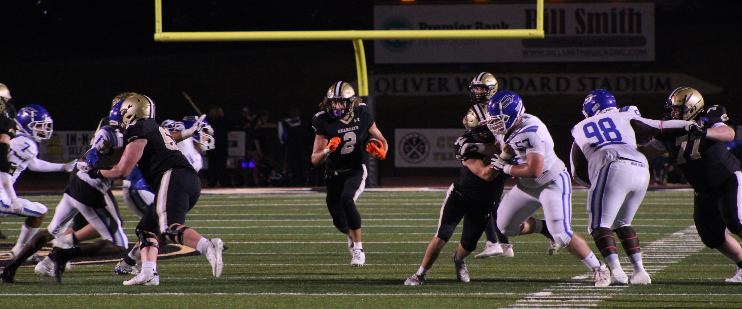 Including several sacks, Cullman’s defense held the Blue Devils to only 98 total yards in the first half compared to Cullman’s 275 total yards.