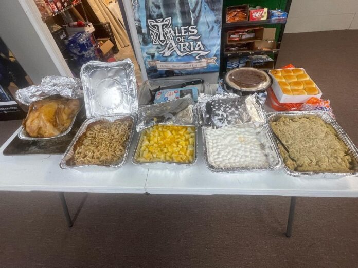 “So my whole thought behind it is, we want individuals to have a place to come to and fellowship and eat in case they don’t have family or friends that day. Maybe they get done with their family stuff and have nowhere else to go. We just don’t want people to be alone that day,” he said, explaining that over the years the Gamer Geeks Thanksgiving feast has grown exponentially, seeing upwards of 70-80 attendees throughout the day.