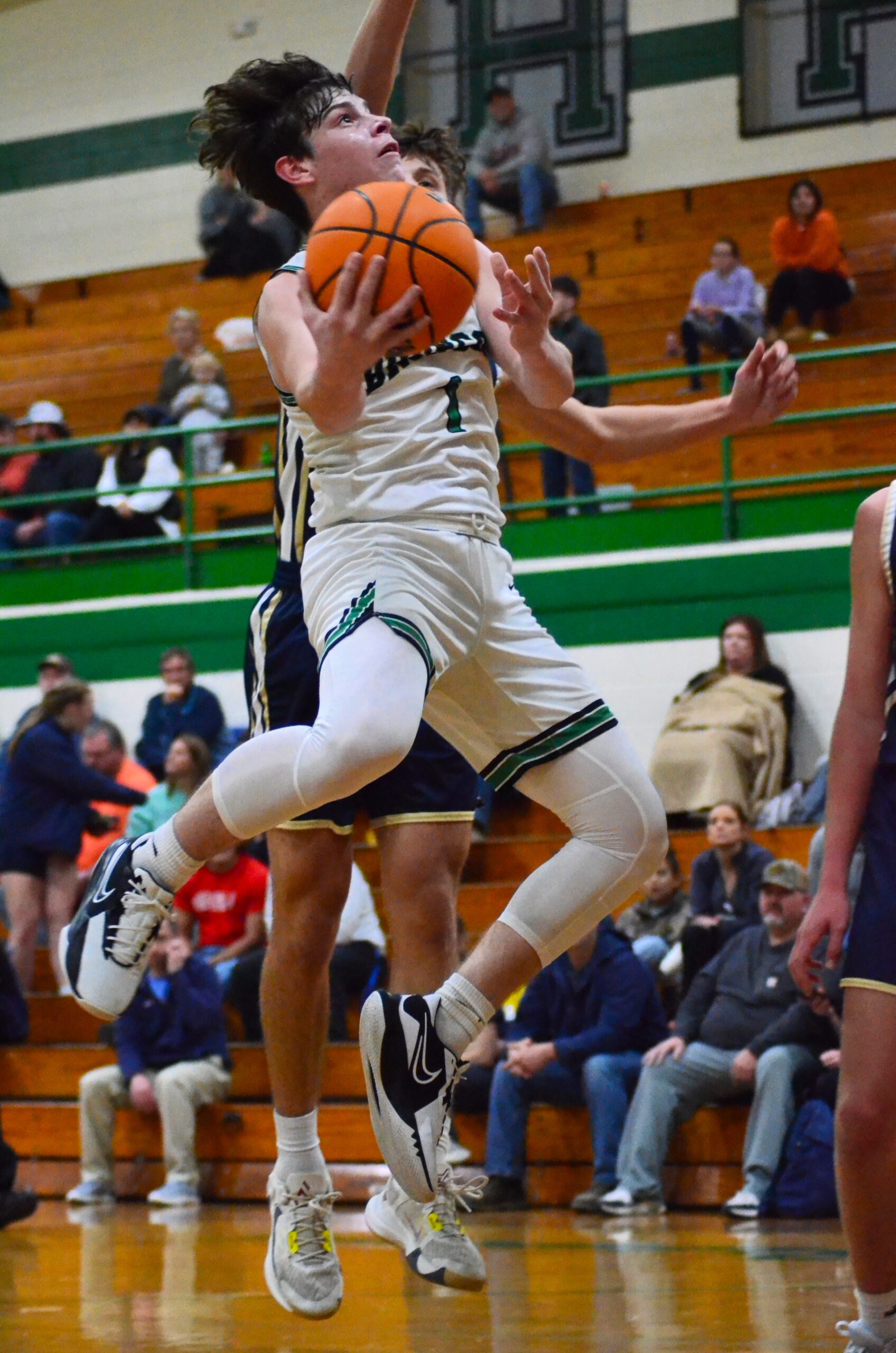 Kollin Brown scored the first 10 points for Holly Pond to keep the game tied with three minutes to play in the first quarter and after the Tigers pulled ahead, Asher Thrift drilled a three-pointer to cut the lead to 15-13. Sawyer Olinger drained a pair of free throws to tie the score at 15 in the final minute of the first and with 30 seconds on the clock, he converted an and-one play at the free throw line to give the Broncos an 18-17 lead going into the second.