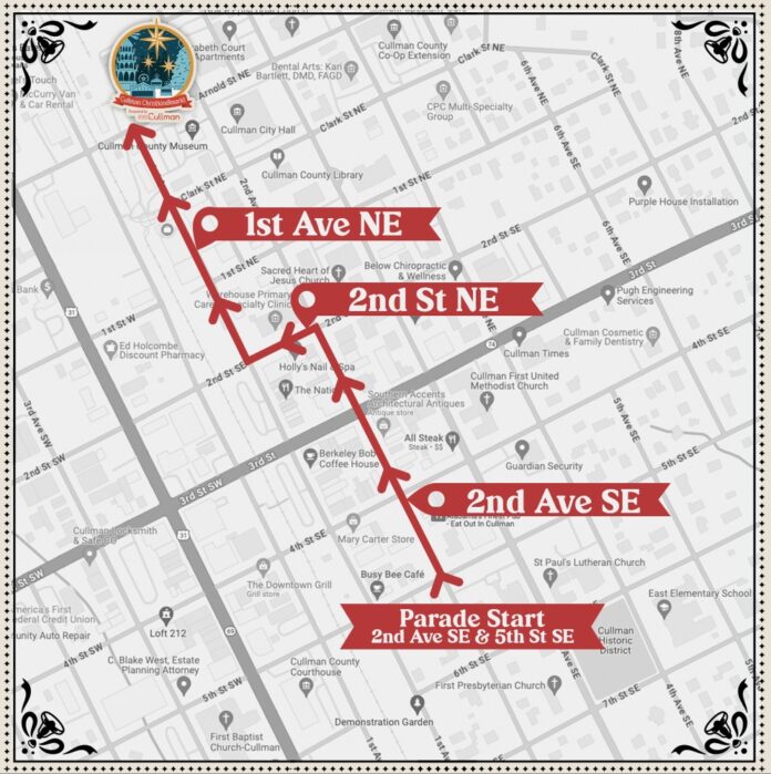The parade will begin at 6 p.m., Friday, Dec. 1, at Second Avenue Southeast and Fifth Street Southeast, and will travel north along Second Avenue, turn left on Second Street Northeast and continue north along First Avenue Northeast to Depot Park.