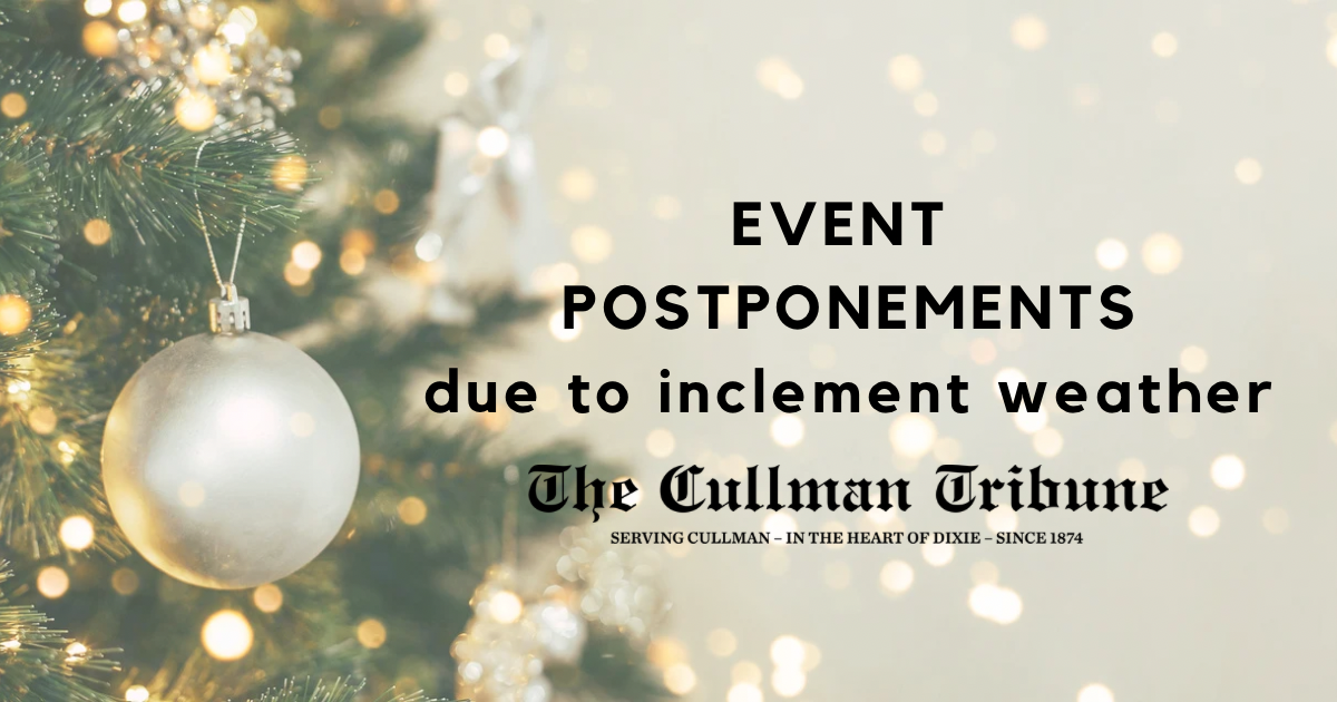 CULLMAN, Ala. – Due to expected inclement weather, several local communities have opted to postpone outdoor celebrations originally scheduled for Saturday, Dec. 2 and Sunday, Dec. 3, 2023.