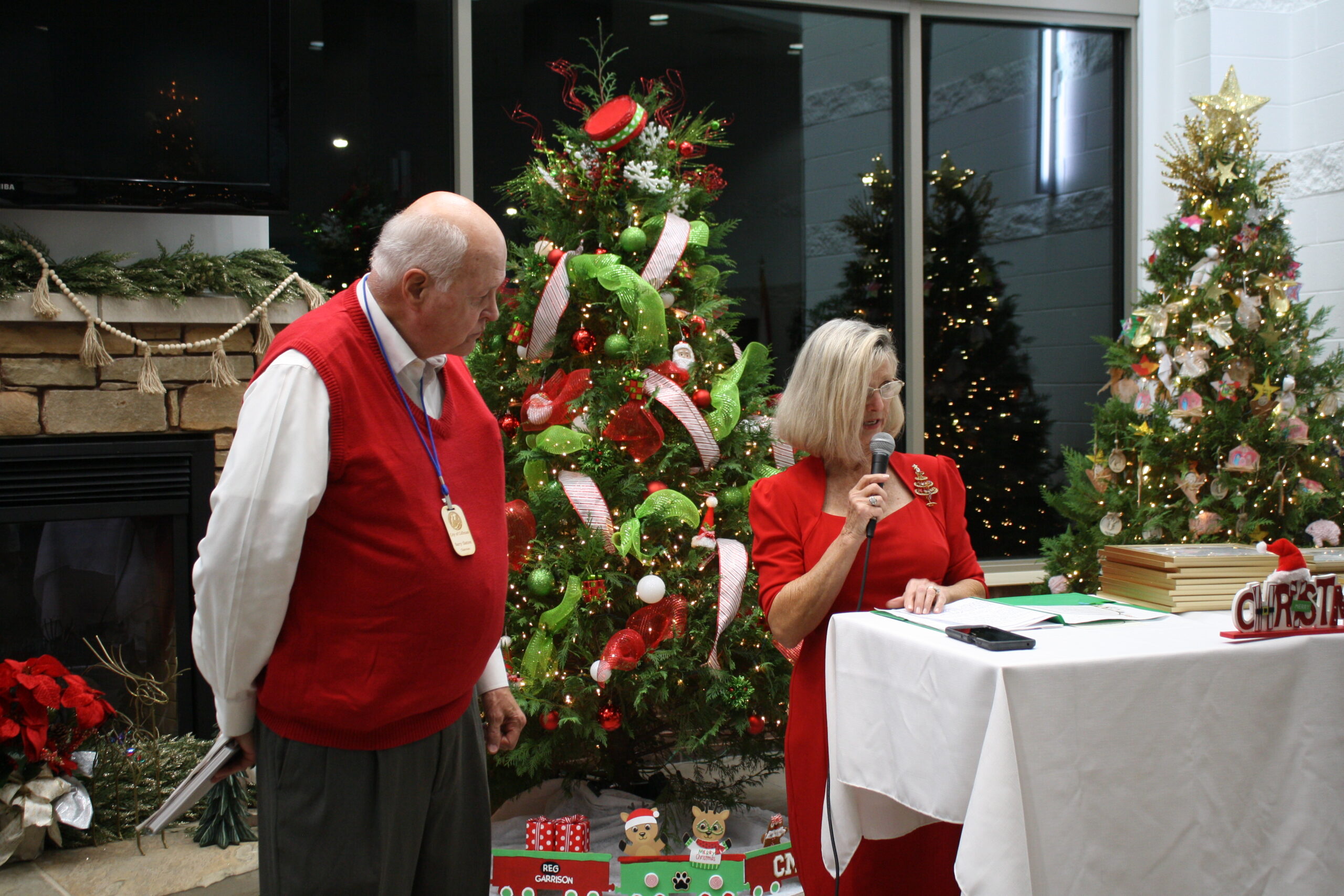 Tree Commission Chairman Barry Slatton addressed admirers and school representatives at the Festival of the Trees opening ceremonies, sharing the heritage and history behind Christmas trees before relinquishing the mic, saying, “I’d like to give a brief history of the trees. They were first brought into German homes in the 1500s. By the 1600s, the decoration of the trees in German homes very much spread into that country and spread into England. It came to America in the 1850s; the national holiday of Christmas was established by the President of the United States at the time, Ulysses S. Grant in 1870.”