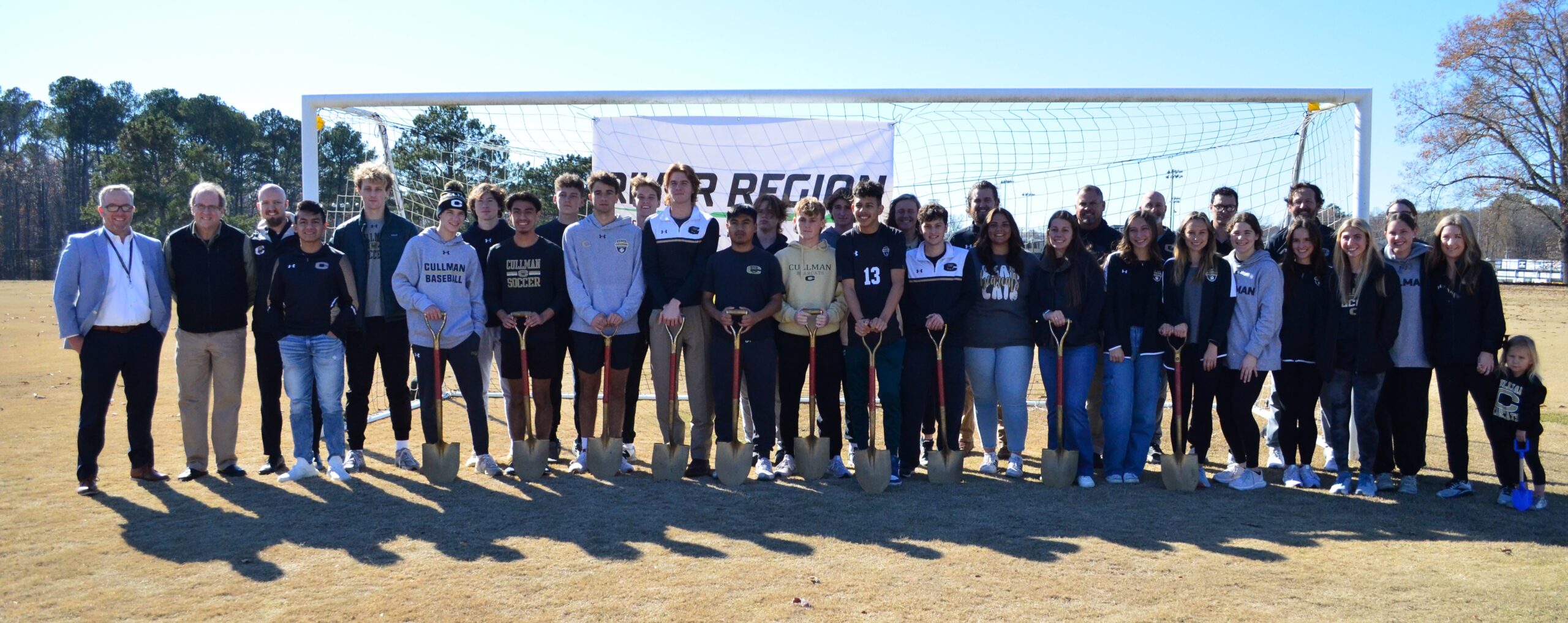 CULLMAN, Ala. – Cullman City School Board members, along with Superintendent Kyle Kallhoff, joined Cullman High School administrators, coaches, players and others on Cullman High School’s Soccer Field Tuesday to celebrate the first steps of a project they’re all excited to see get underway. The $2.3 million project includes a turf soccer field, as well as multi-use turf practice space that can also be utilized by the baseball and softball teams. Unlike the current grass field, a turf field will have much better drainage and be available for use year-round. Work is slated to begin immediately with anticipated completion in mid-spring of 2024. Kallhoff, CHS Athletic Director Mark Stephens and several CHS coaches shared some remarks on the impact these new facilities will have on their athletic programs.