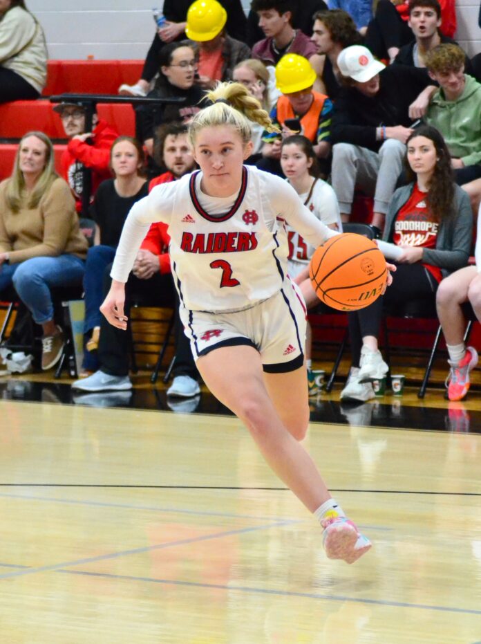 With the clock running throughout the final period, the Lady Raiders were able to cruise the rest of the way. Lucie Adams drained a three to make it a 79-23 game and after a McHan basket made it 81-23 later in the fourth, a three-pointer from Lillie McCluskey capped an 84-28 win for Good Hope.