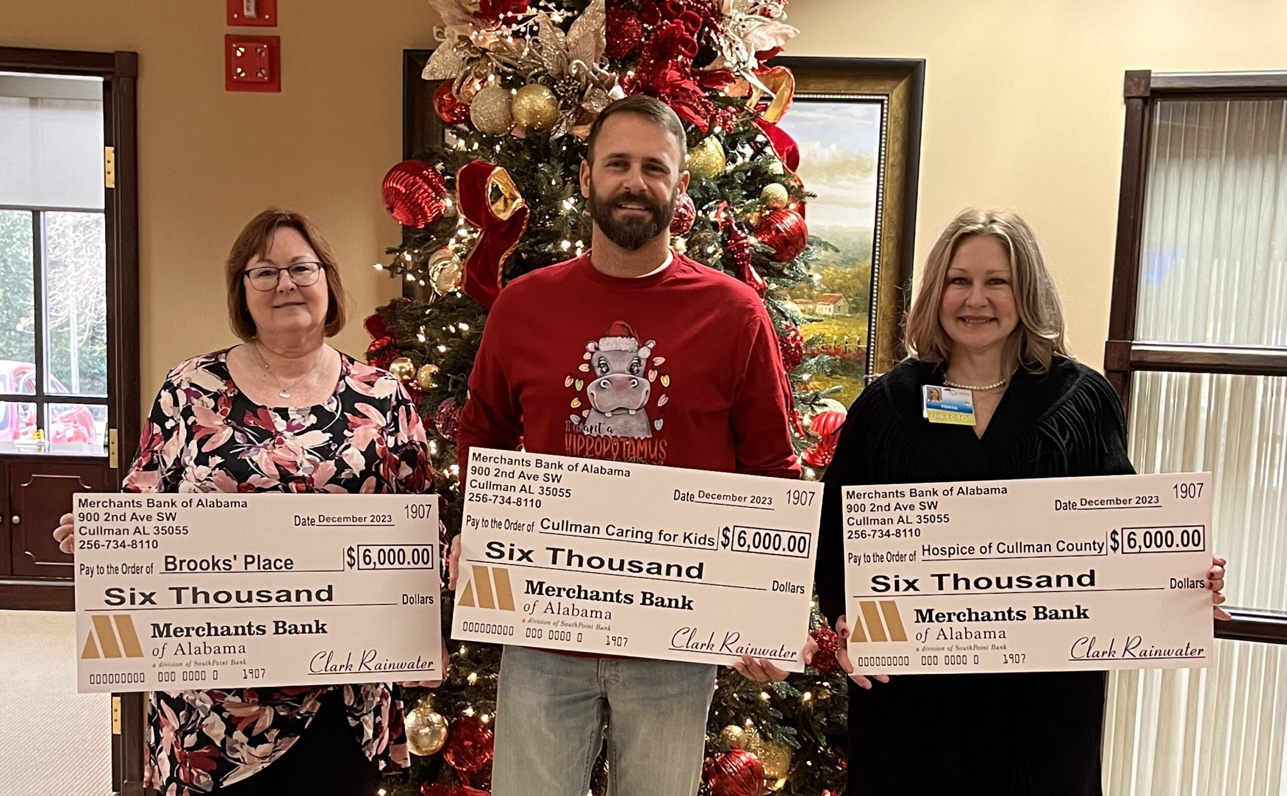 CULLMAN, Ala. – For three decades, Merchants Bank has hosted its annual Charity Classic golf tournament in early October, working to raise funds for local nonprofits. This year, the donation checks totaling $20,000 came just in time for Christmas for Cullman Caring for Kids, Brooks’ Place and Hospice of Cullman County.