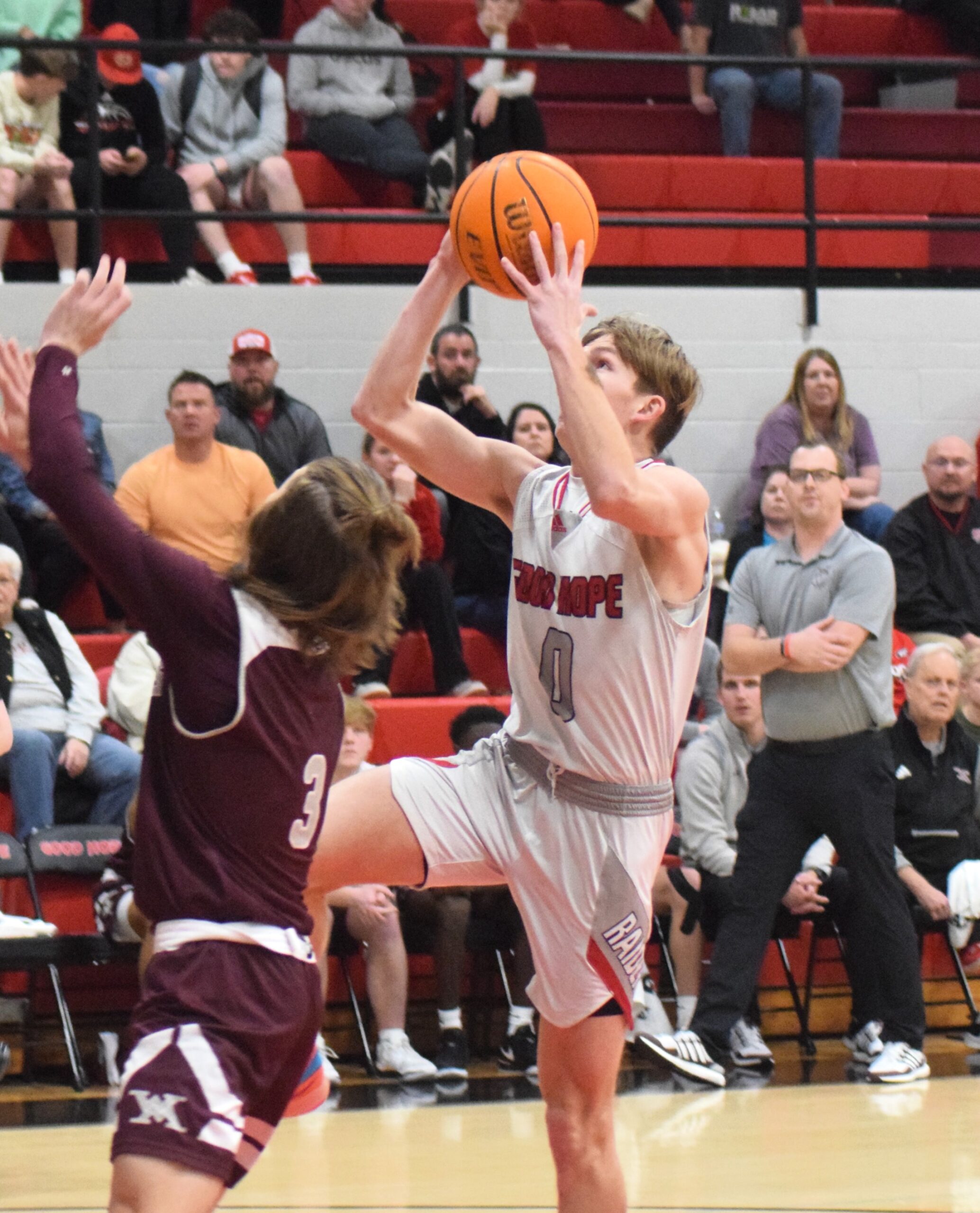 A steal by Bell led to a fast-break layup by Jacob Haynes, and that gave Good Hope a 23-21 lead early in the second. Later on, back-to-back layups by Hancock made it a 27-23 game, but a quick 8-0 run by West Morgan gave them a 31-27 lead. Another Rebel trey pushed their lead to 34-28 late in the first half, but a basket each by Bell and Haynes cut it to 36-32 at the half.