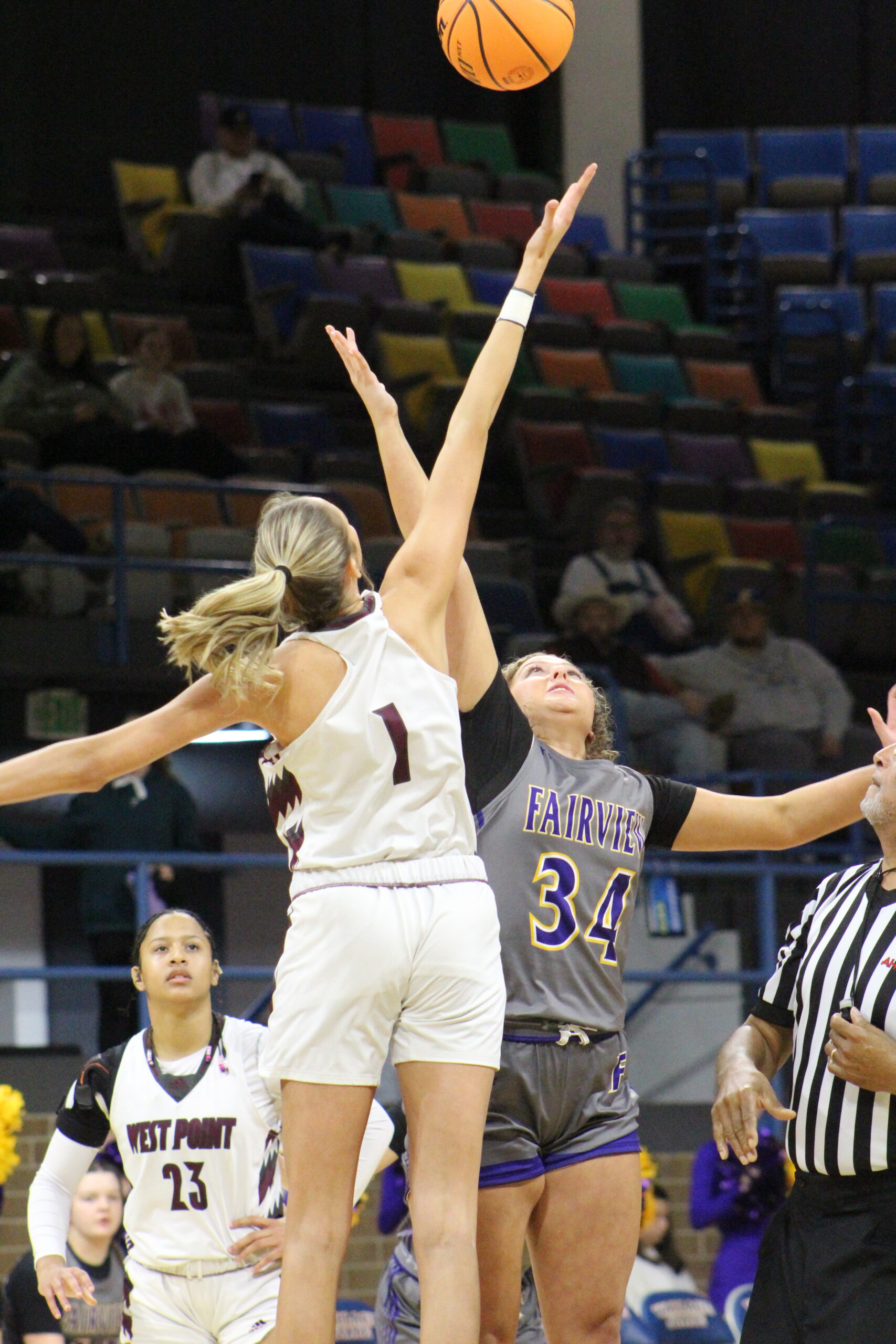 Both teams went scoreless for a little over two minutes to start out the second before Liberty Shadix put in a jumper to make it a 22-10 game. An and-one by Gorham made it a 22-13 game, and she later made a tough down low to trim the Fairview deficit to just six at 22-16 with 3:44 remaining in the first half. Jaelyn Faulkner banked in a short shot to give West Point a 24-16 lead, but Gorham drained a trey from the right corner to cut it to 24-19 late in the first half. Liberty Shadix knocked down a pair of shots in the paint to increase the Lady Warrior lead to 28-19 at the half.