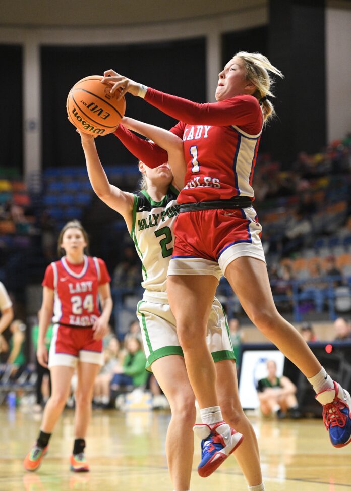 HANCEVILLE, Ala. – Holly Pond and Vinemont battled it out in Wednesday night’s first varsity matchup at the county tournament and it came down to the final shot. The Lady Eagles held onto a 26-19 lead after the first half and withstood a big push from the Lady Broncos in the fourth quarter to secure a 41-38 win and a spot in Thursday night’s semifinal round.