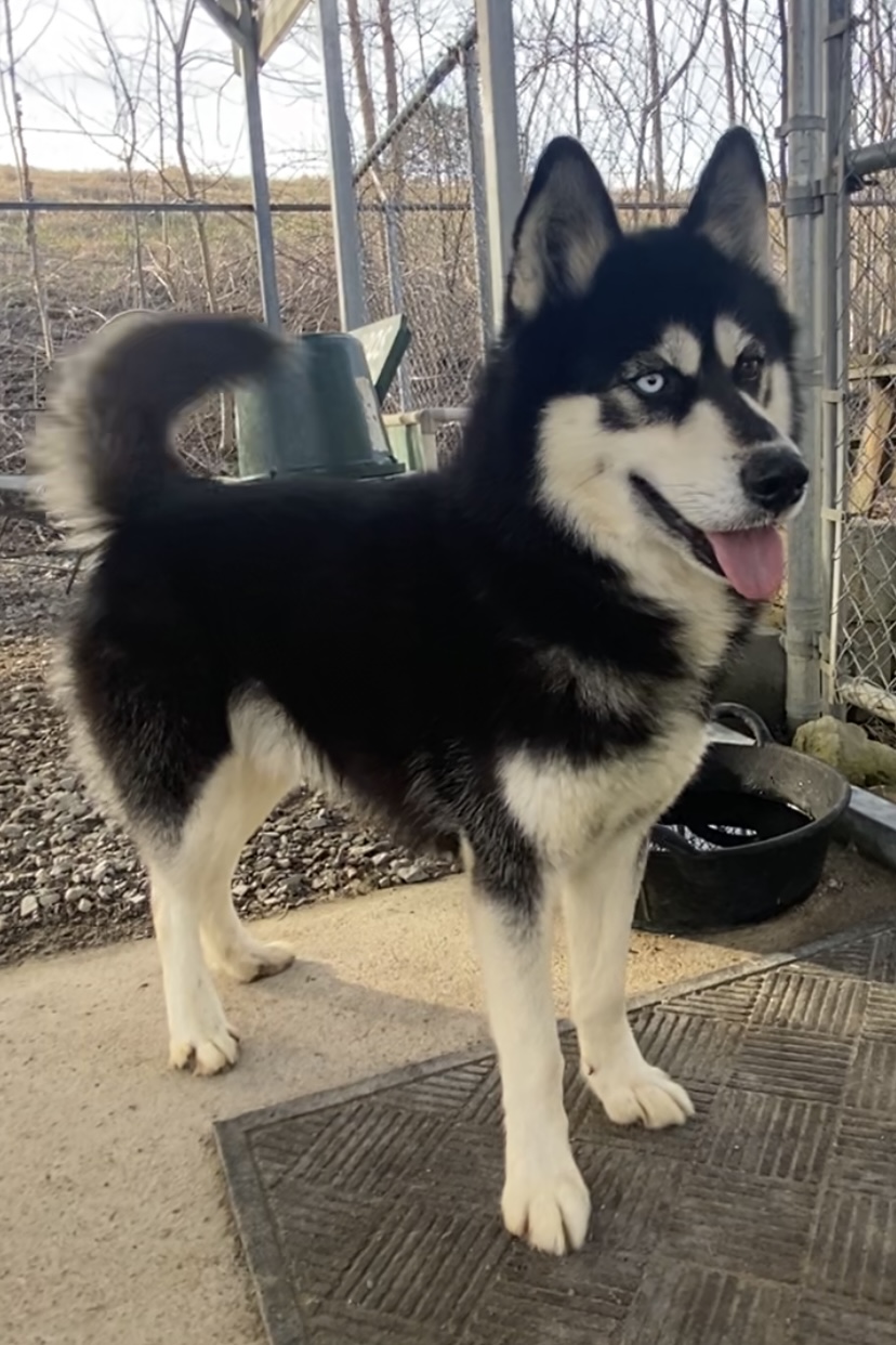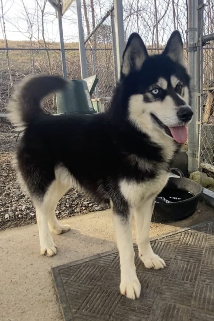CULLMAN, Ala– Walker James, an approximately 2-year-old male Husky with a rustic ebony and cream coat and stunning heterochromatic eyes, is available for adoption at Cullman County Animal Shelter.