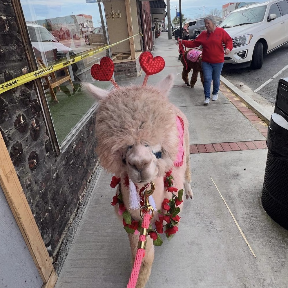 Local fluffy favorites Chewy and Bob, alpacas from Talley-Ho Farm, will be continuing their annual tradition of alpaca-grams. Beset in pink and red florals, Chewy and Bob will visit your loved one’s work or home and spend half an hour soaking up the scene, available for pets and photo ops! Message Talley-Ho Farm on Facebook to make your reservation – hurry, spots are filling fast!