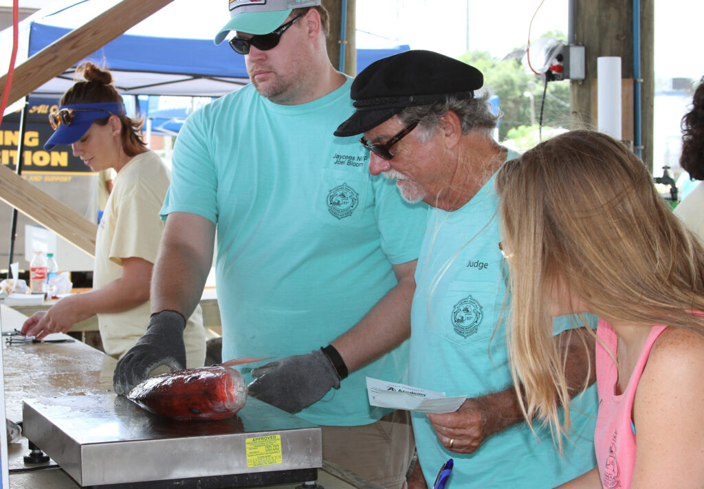 As head rodeo judge, Shipp weighs in another of Alabama’s signature fish, the red snapper. (Photo by David Rainer)