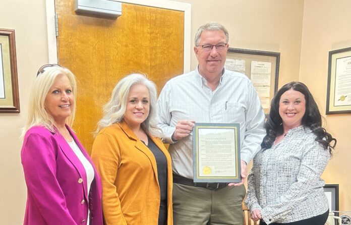 CULLMAN, Ala- Cullman Mayor Woody Jacobs on Tuesday, Feb. 6, proclaimed the month of February 2024 “Teen Dating Violence Awareness Month” (TDVAM) in the city of Cullman. On hand to accept the official proclamation from Victim Services of Cullman were Jessica Atchley (interim executive director), Lacey Lemley (outreach advocate) and Gwen Parker (board president).
