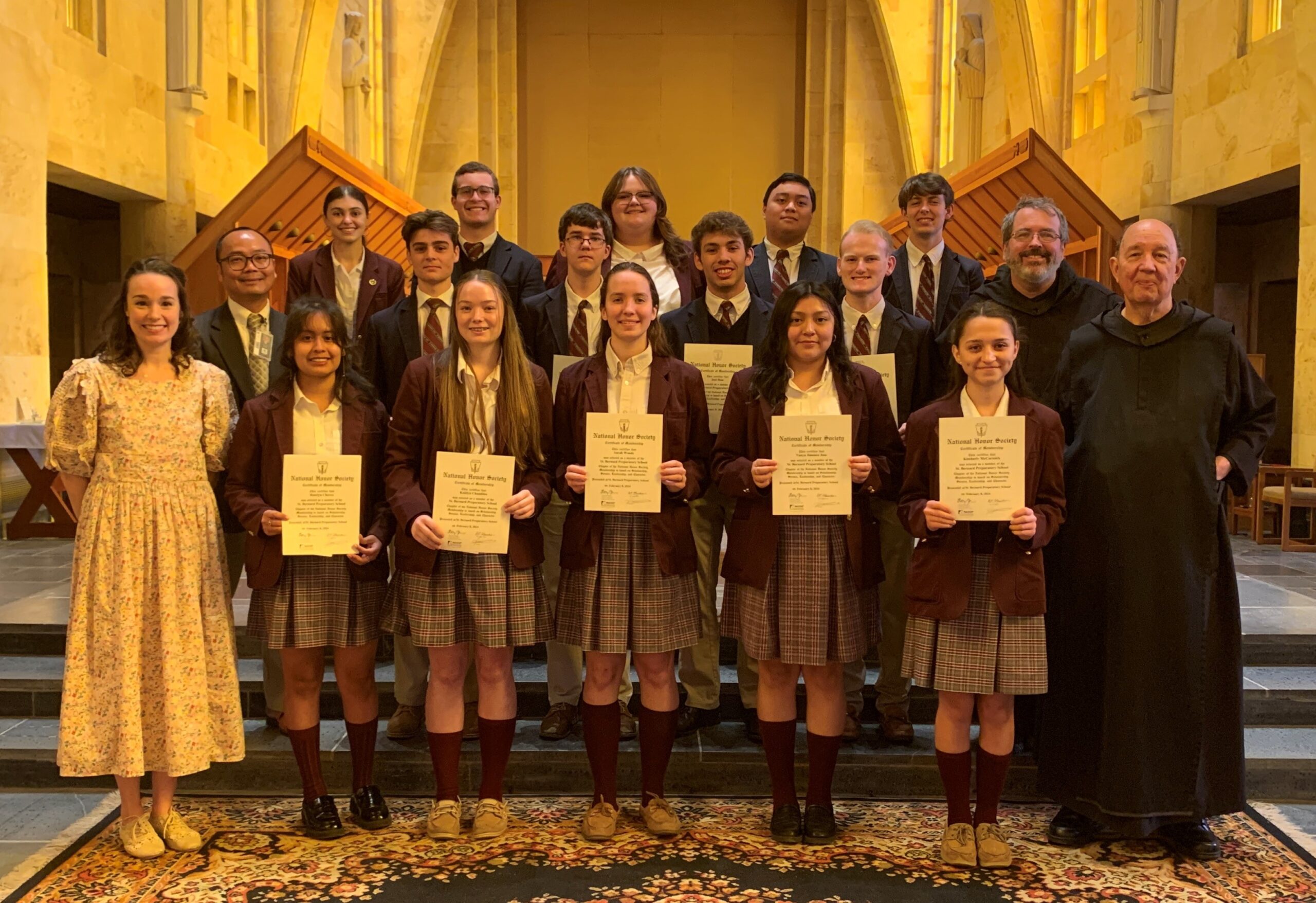 CULLMAN, Ala. – St. Bernard Preparatory School recently held its annual Honor Society induction ceremony to recognize students for their outstanding achievements in scholarship, service, leadership and character. The ceremony, presided over by Honor Society President Andrew Tombo, followed the weekly Mass, emphasizing the school’s commitment to both academic excellence and spiritual growth.