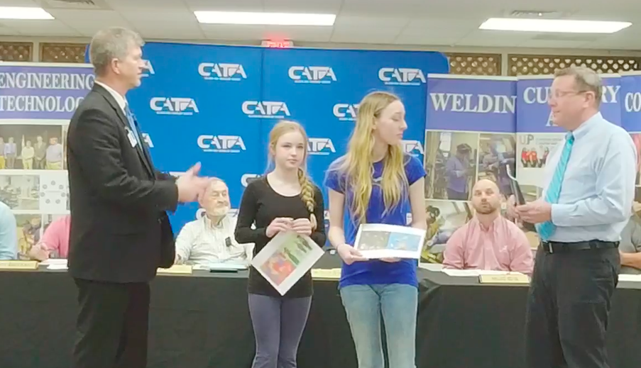 CULLMAN, Ala. – The Cullman County School Board held its monthly meeting on Feb. 15 and recognized two students who placed nationally in the Horace Mann Academic Planning Calendar Design competition. West Point Middle School student Aliana Riggs was named the national champion for the contest in grades four-eight, and her artwork will be featured on the cover of the 2024 Horace Mann Academic Calendar. Third place was clenched by fellow Warrior, West Point High School student Aspen Sellers. Both girls were recognized at the meeting by Greg Privett, a representative of Horace Mann.