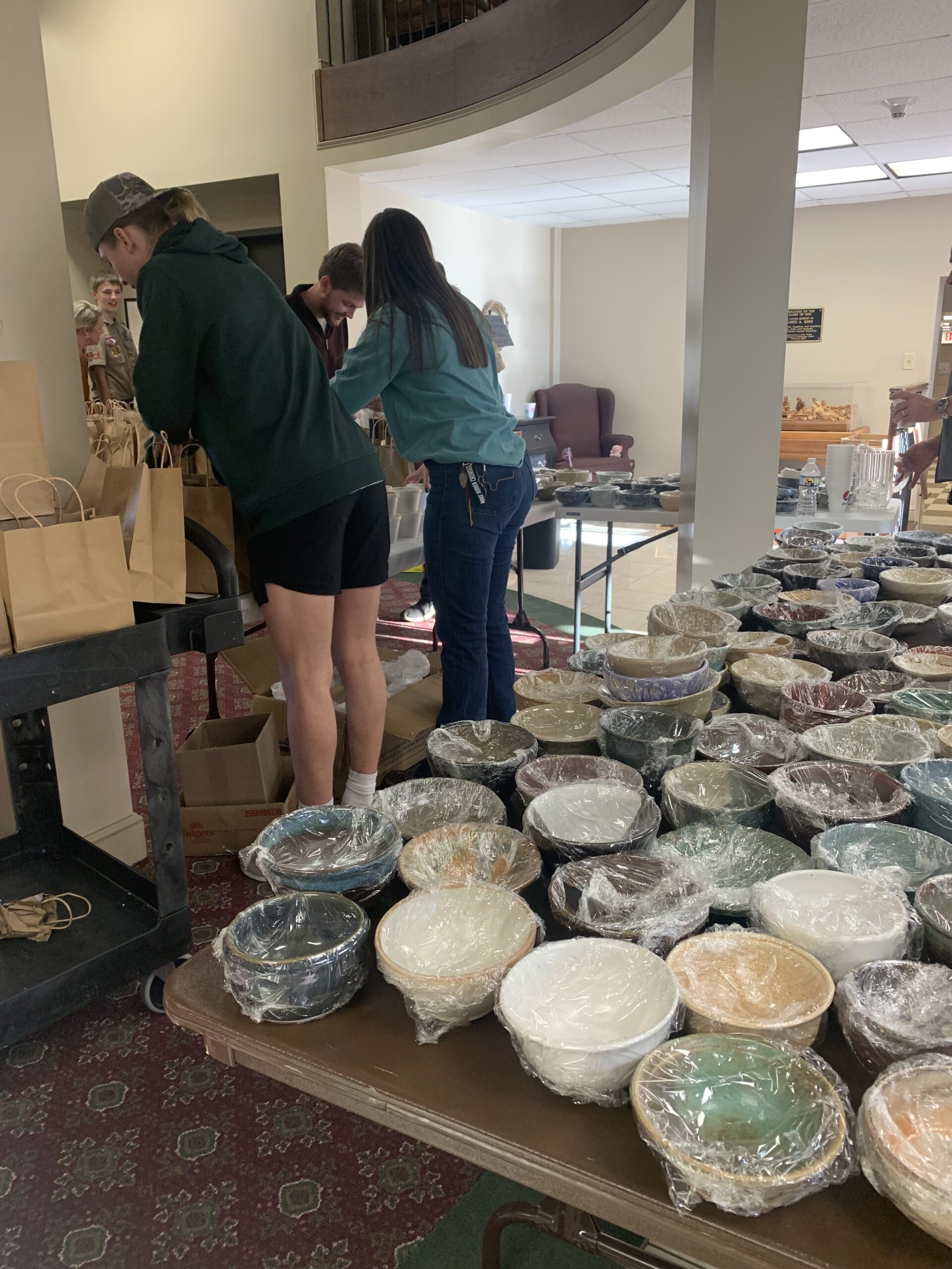 The food was prepared by staff and volunteers from FUMC, as well as Cullman Caring For Kids, alongside Three Guys Chili, which has been a big supporter of the benefit throughout its run. Tickets for the meal sold in advance or at the door for $15 each and included a walk through the silent auction, a delicious meal and a one-of-a-kind, hand-thrown pottery bowl, made by Sandra Heaven. The local potter threw over 1,000 bowls in anticipation of this event, each slightly different than the next.
